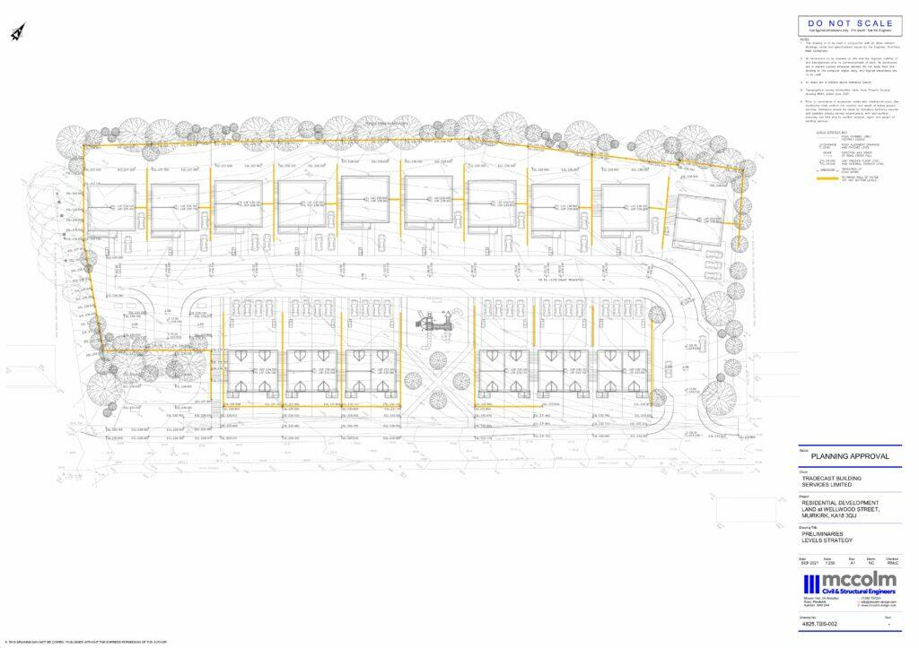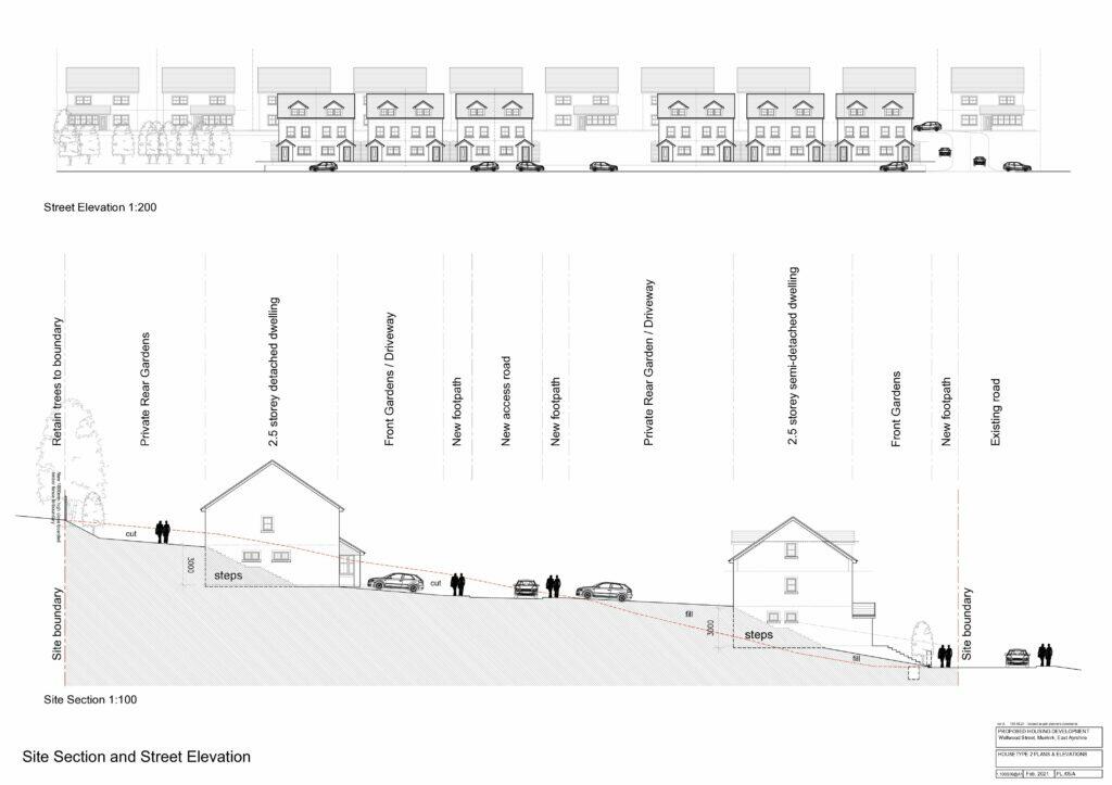 This listing presents a development opportunity in Muirkirk, East Ayrshire. The key feature is the substantial 2.7-acre plot of land, which has received planning permission for the construction of 22 residential units, comprising 10 detached 4⁄5-bedroom houses and 12 semi-detached 3-bedroom houses. The site plans showcase a thoughtfully designed development incorporating both house types. The provided architectural drawings illustrate the proposed designs of the houses, which appear to be modern and practical. The location is situated in a relatively quiet area, providing a potential appeal to those seeking a peaceful environment. However, prospective buyers will want to assess the potential construction and infrastructure costs, local market demand, and time-to-market factors to fully evaluate the financial viability of this venture. The lack of readily available data on local transportation, schooling and amenities necessitates further investigation. The current listing price is presented without a breakdown of costs per square foot, given that the land itself is vacant and thus does not have a defined square footage. The lack of existing buildings to assess the property’s current condition is also a factor in the analysis. Interested parties must conduct thorough due diligence to ensure that the listed price aligns with their own development costs and prospective sale value of the finished housing units.
