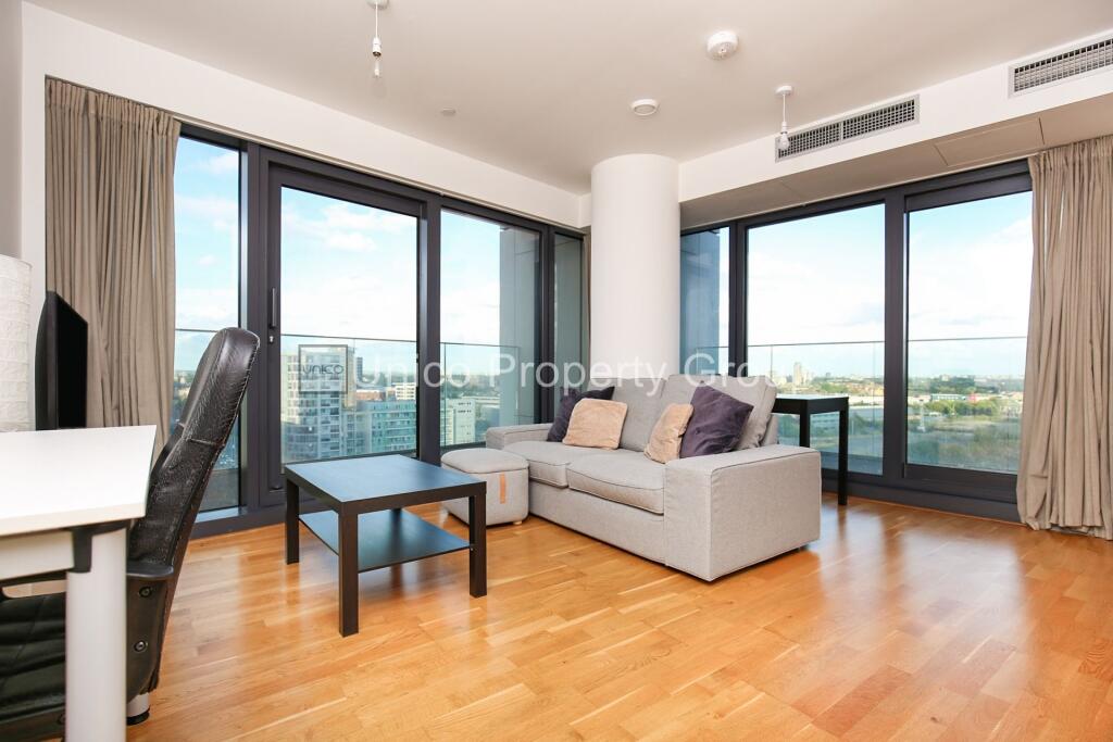 Boasting floor-to-ceiling windows, this one-bedroom apartment in the prestigious River Heights development showcases stunning panoramic views across London