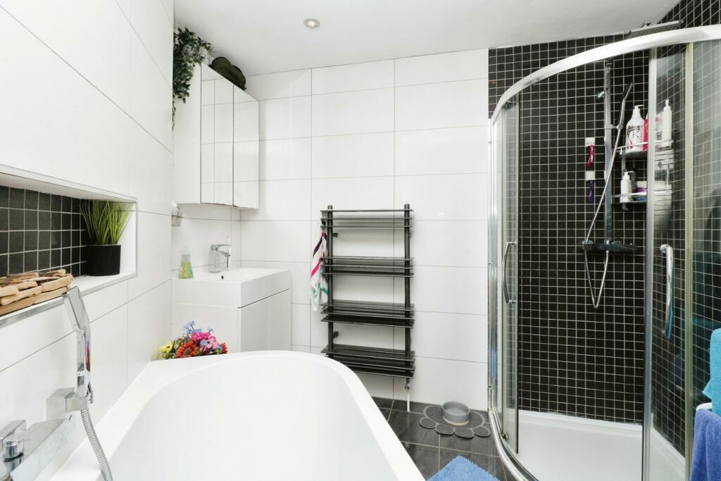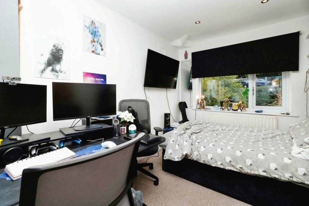 This four-bedroom detached house in Urmston offers a blend of modern updates and family-friendly features. The property’s interior boasts a recently renovated kitchen and bathrooms, showcasing modern aesthetics and functionality. The images suggest a comfortable living space with multiple rooms providing ample room for a family or individuals with varying living needs. A patio garden provides an area for outdoor relaxation, although its dimensions are unclear. The property’s location in Urmston benefits from proximity to Flixton train station and several schools, which could enhance its appeal to families and commuters. The exact distances of these schools are not provided, however. The price is reasonably competitive with respect to other properties in the area, though further detailed price per square foot analysis is required to solidify the valuation and provide a more precise measure. A comprehensive survey would be needed to fully assess the structural integrity and potential maintenance needs of the property. The lack of precise plot size information also limits a thorough analysis.