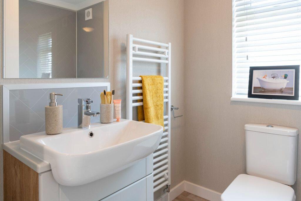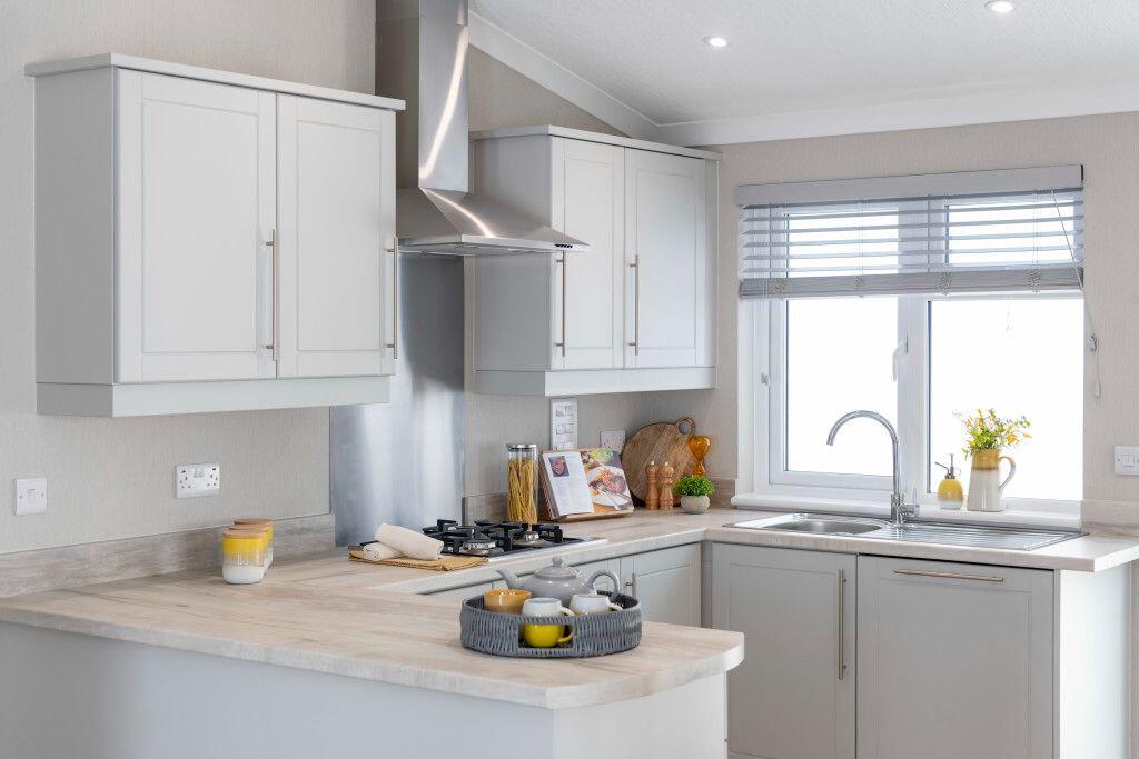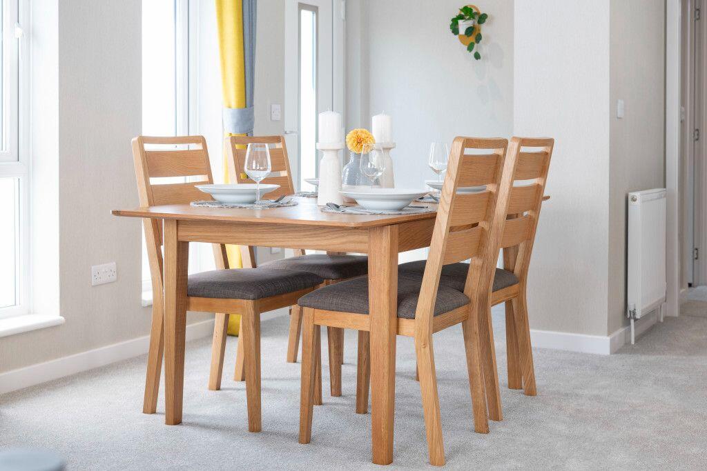 This is a modern, well-maintained park home located in a countryside setting. The property features a contemporary interior with a stylish kitchen and bathroom. While the location offers a peaceful environment, it is somewhat removed from urban amenities and highly-rated schools. The price appears reasonable for the type and condition of the property, making it an attractive option for those seeking a more affordable and low-maintenance home in a rural area. The property is located in Oakdale Place.