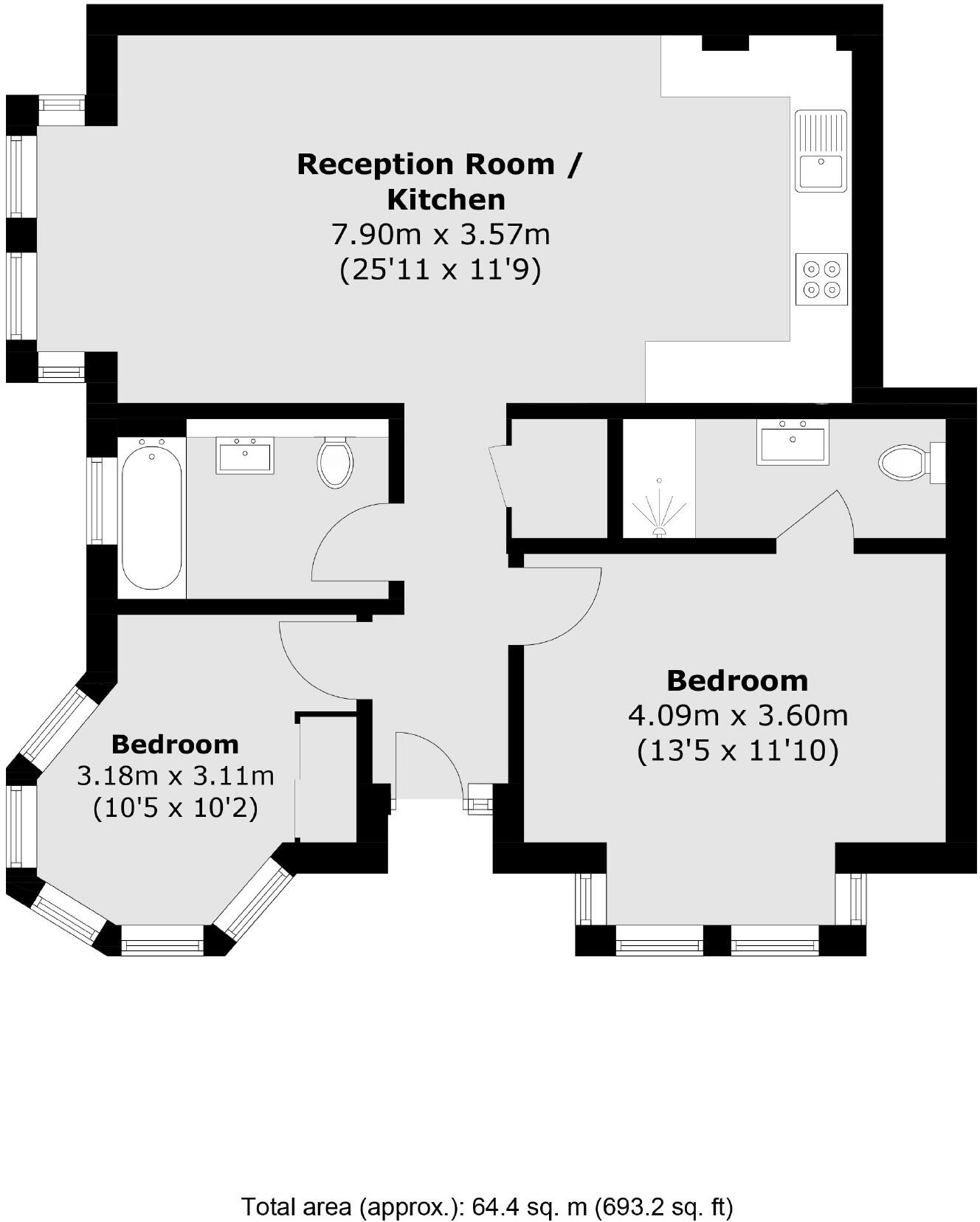 This property is a 2 bedroom 2 bathroom flat located in the Cleveland area of Ealing, West London. The property is well presented and benefits from a private garden. The location is excellent, with good transport links and nearby schools. The property is listed at £575,000 which is below the average price for the area, making it good value for money. However, the property is smaller than average at 693 sqft compared to an average of 913 sqft.