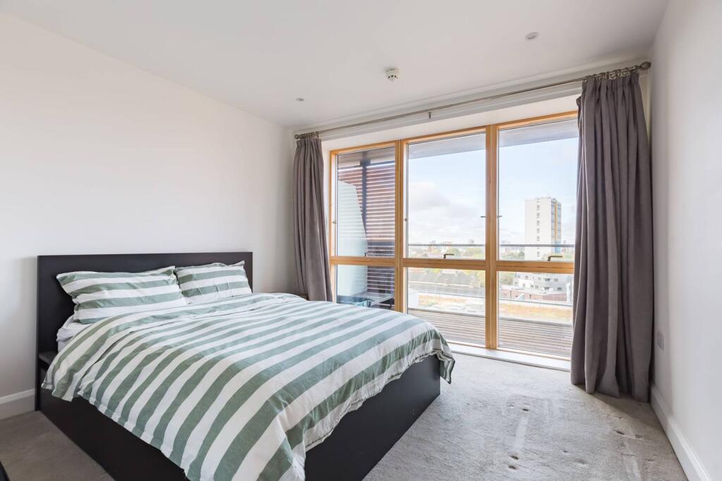 A stunning contemporary flat, offering 2 large bedrooms, 2 bathrooms and a chic open plan reception room/kitchen leading to a large balcony with a view over the city and Canary Wharf.