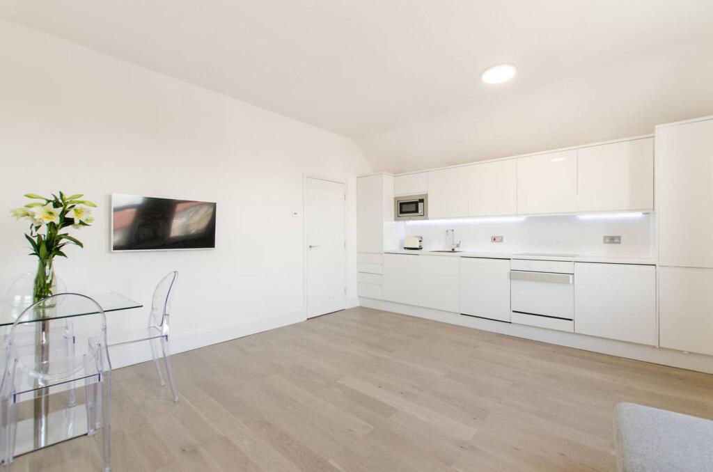 SHORT LET. Situated on the top floor of a period conversion, and recently renovated to an exceedingly high standard throughout, a 1 bedroom flat with newly converted open-plan living space, new kitchen and new bathroom.