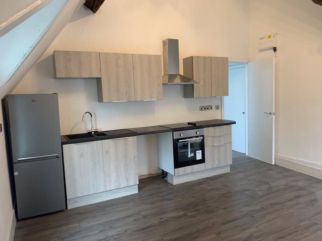 FULL REFURB JUST COMPLETE: Large fresh interior with a double bedroom and contemporary bathroom. The living area includes a brand new modern kitchen complete with appliances, bright spacious living area with high vaulted ceilings and balcony. Very close to MRI (3 min walk) & close to Manch City C