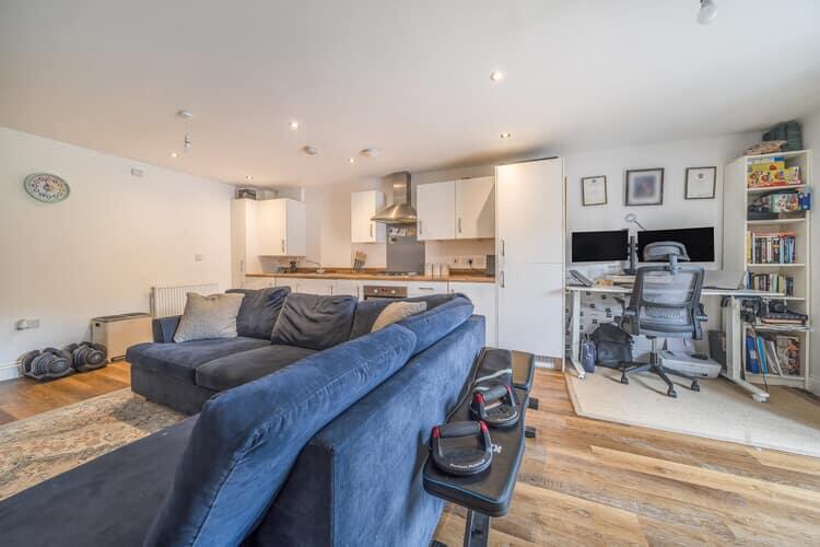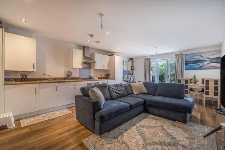 This is a two-bedroom flat in Hook, Hampshire. The property is in good condition and benefits from a modern kitchen and bathroom. The location is desirable, with good schools and transport links. The flat is 803 sqft, which is a good size for a two-bedroom property. The list price of £82,500 reflects the shared ownership scheme.
