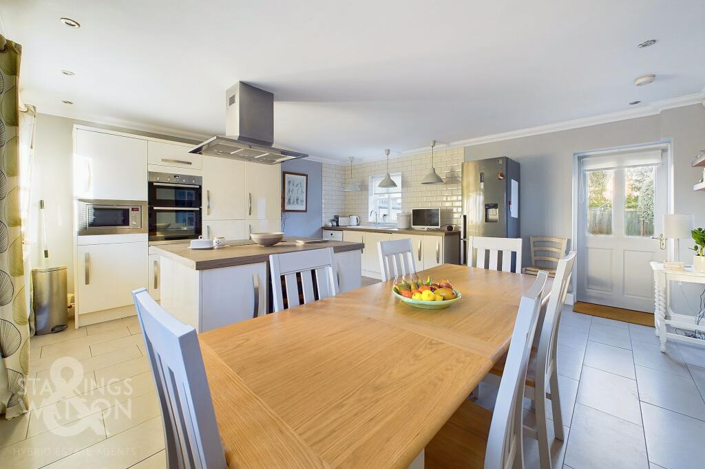 NO CHAIN. Extended and MODERNISED, this 1274 Sq. ft (stms) FAMILY HOME offers a ONE OFF LAYOUT with FLEXIBILITY and an IDEAL POSITION close to the VILLAGE SHOP. Centred on the 17' KITCHEN/DINING ROOM, a CENTRAL ISLAND and EXTENSIVE STORAGE creates the ideal family friendly kitchen. The front hall...