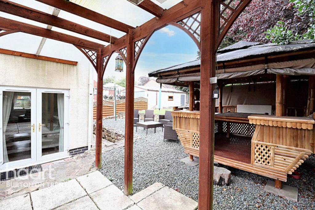 The property is a detached house located on Main Street, Burton-On-Trent, in the Stapenhill locality. It is situated within East Staffordshire, in the West Midlands region of England. The property is conveniently located near The Violet Way Academy, which has an ‘Outstanding’ Ofsted rating, and Burton-On-Trent train station. The property appears to be in generally good condition, with modern kitchen and bathroom fittings. It boasts a generously sized garden with a patio area, a large lawn, a shed, and a unique gazebo structure. The list price is £335,000 for a 1,260 sqft detached property. The average price in the area is £476,875 with an average sqft of 1,176 and an average price per sqft of £405. The subject property’s price per sqft is £265.87. This represents good value for money when compared to the local average.