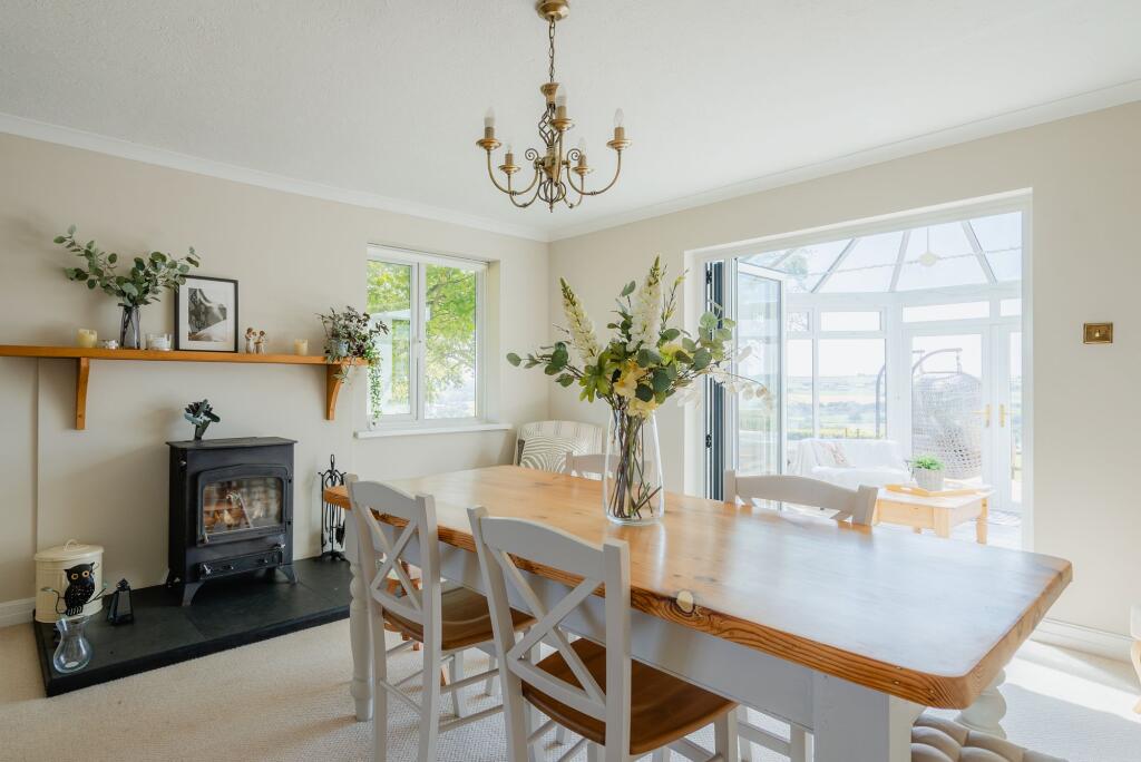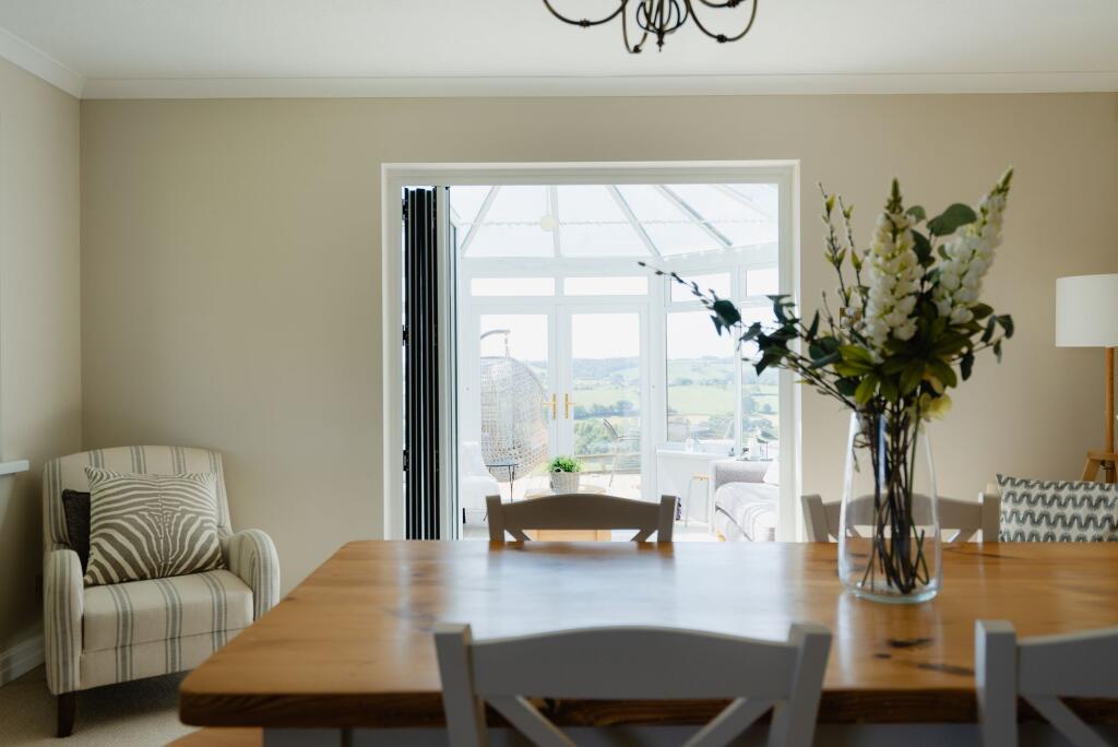 Impressive village edge home with truly stunning views, beautifully presented spacious accommodation including 4 double bedrooms (master ensuite) double garage, parking and lovely gardens
