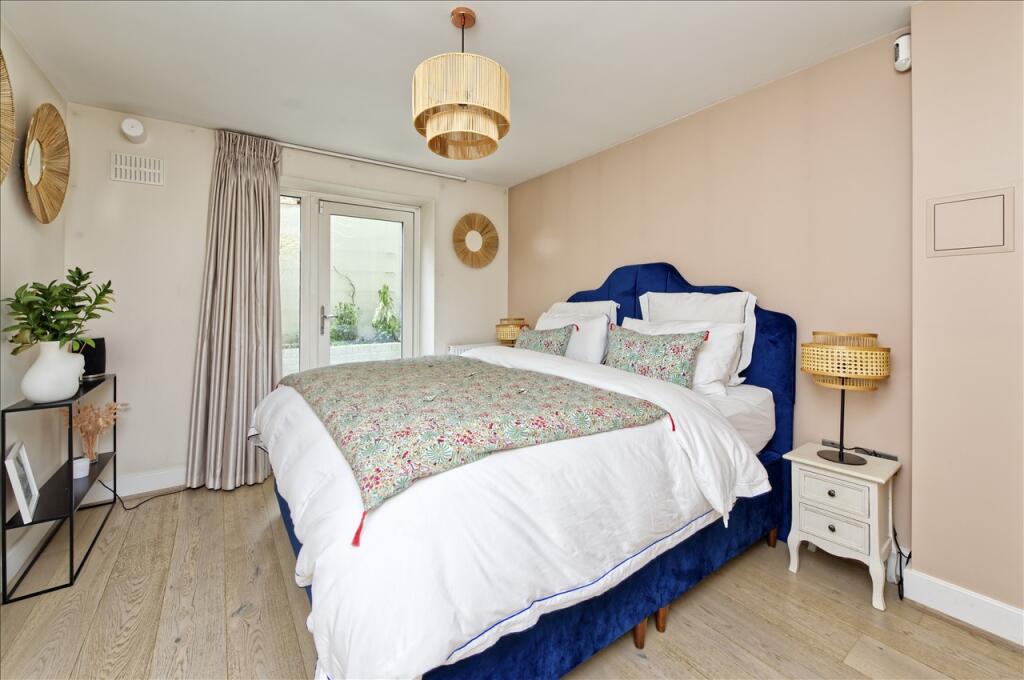 The property itself is presented in immaculate condition. The images showcase a modern, stylish interior with a well-equipped kitchen and contemporary bathrooms. The use of light and airy colours throughout creates a bright and welcoming atmosphere. A particular highlight is the generous private garden, a rare and valuable asset in this part of London. The garden space is well-designed and offers a peaceful outdoor area.