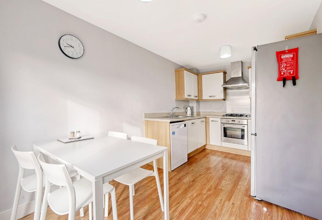 Based on the provided images, the property appears to be in good condition. It is modern in style with a neutral décor, and the fixtures and fittings look new or recently updated. There is no visible evidence of significant wear and tear or the need for renovation. The garden is relatively small but well-maintained, enclosed by fencing, and includes a small shed.