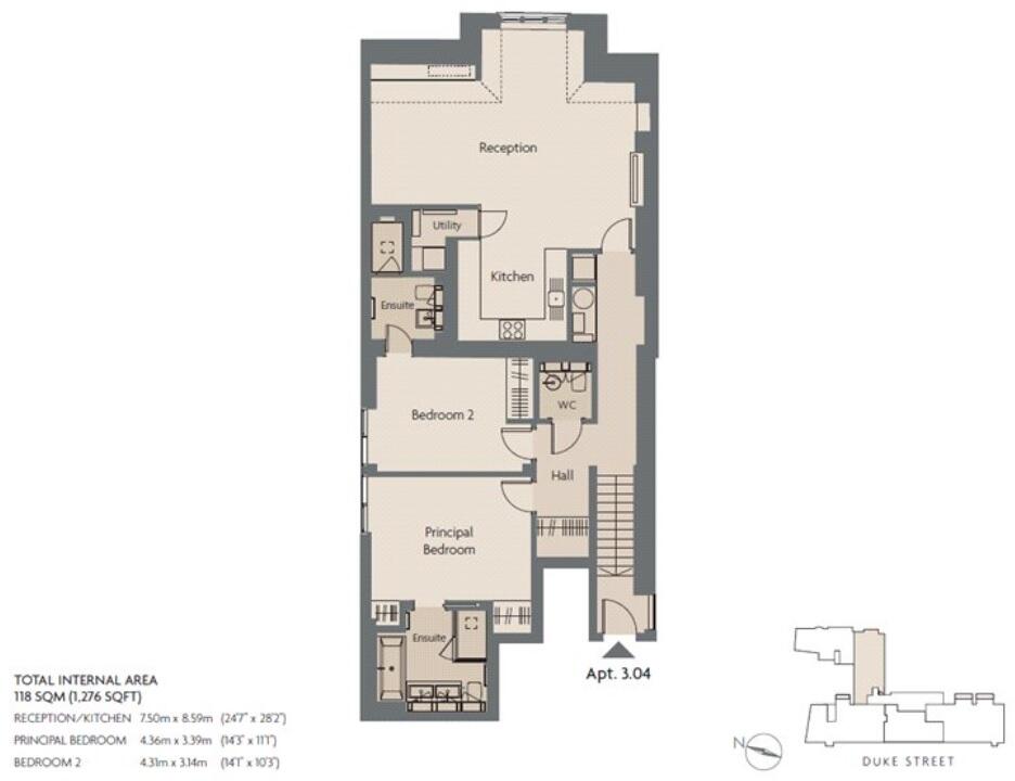 VIRTUAL TOUR AVAILABLE A two bedroom apartment of approximately 1,282 square feet