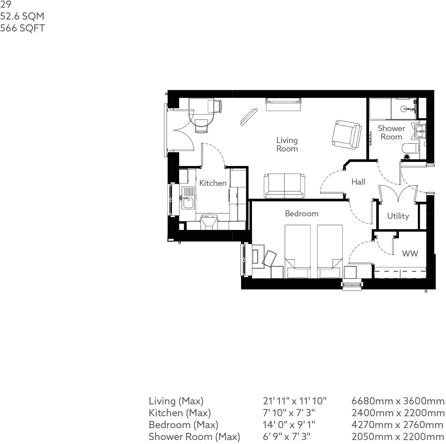 Property 29 is a beautiful one-bedroom apartment measuring 566 square feet, ideally located on the first floor boasting a South facing Juliet balcony. The spacious living room is decorated in a natural colour which gives a bright and airy feel. The fitted kitchen comes complete with integrated f...