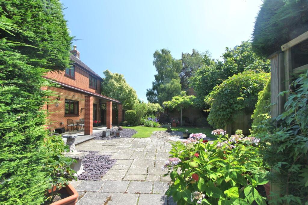 This stunning modern home is secreted away on a private drive, shared with just one other neighbouring property, facing each other across a courtyard with plenty of parking and a double garage to boot! It sits on a generous, level and south-facing plot plot with beautifully tended gardens behi...
