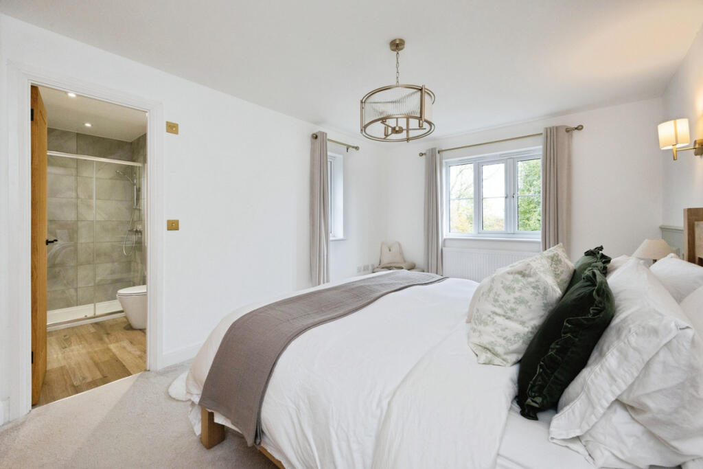 Stunning cul-de-sac home backing onto open fields. Bespoke quartz kitchen, luxury bathrooms, oak veneered doors, wood burner, and Nest-controlled heating. Quiet, modern, and beautifully finished with optional EV charger and security system