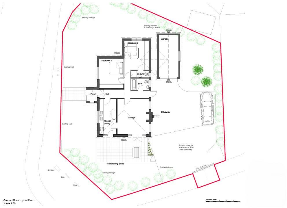 A rarely available building plot with full planning permission(granted June 2024) for a self-build, two bedroom bungalow with access, situated in a popular village.