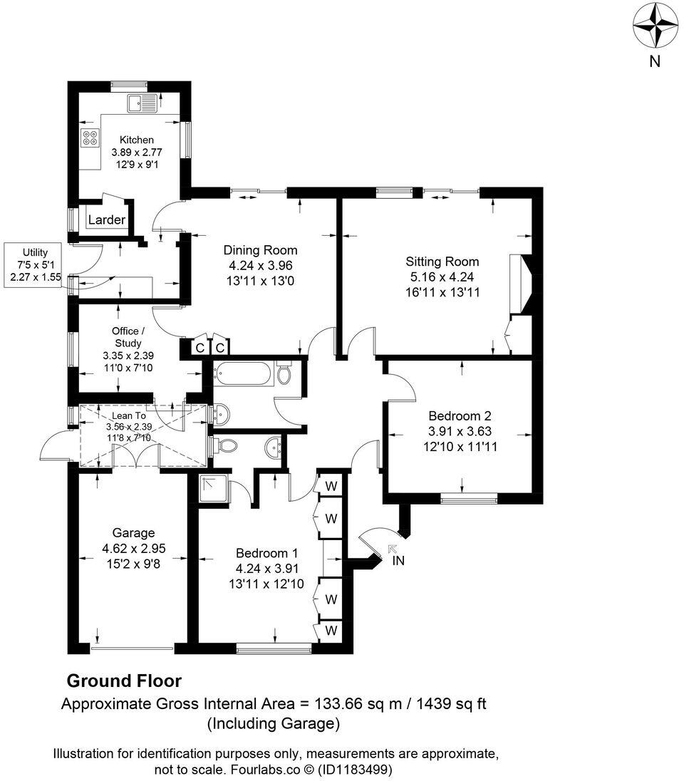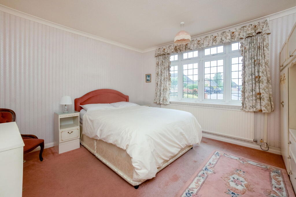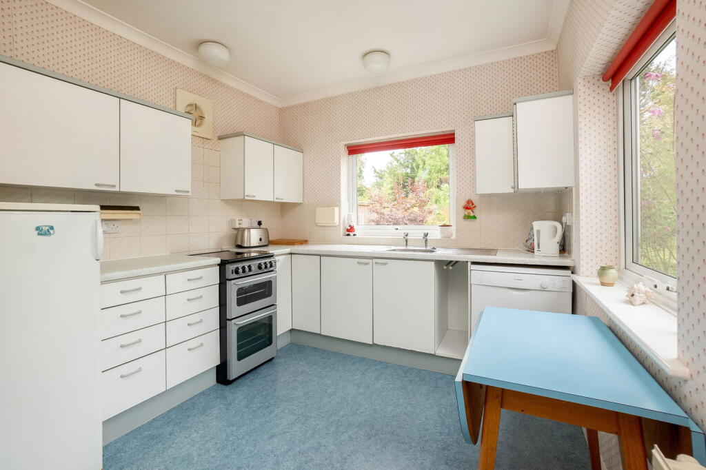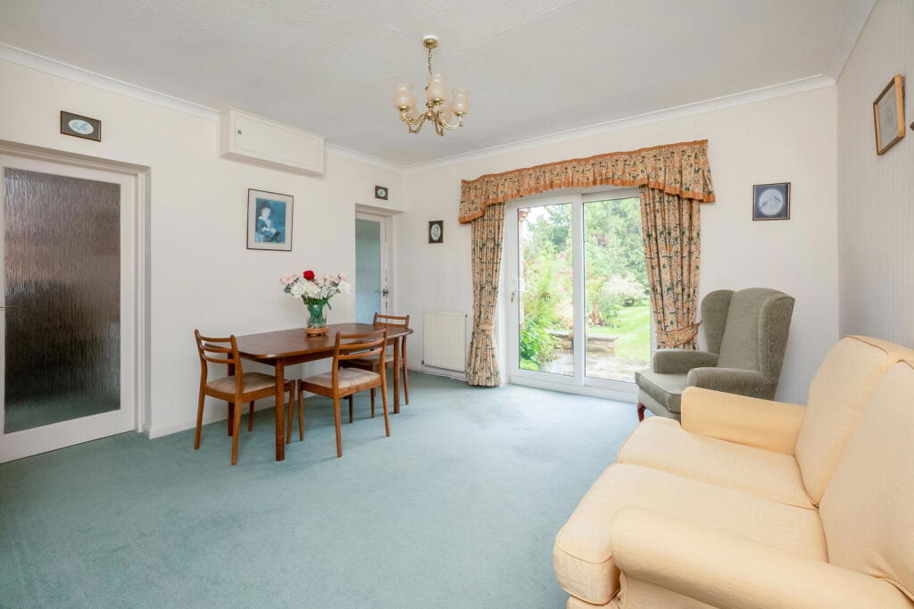 A SPACIOUS TWO DOUBLE-BEDROOM DETACHED BUNGALOW WELL LOCATED A SHORT DISTANCE TO THE SOUTH OF THE TOWN CENTRE IN A POPULAR ROAD SET IN ATTRACTIVE GARDENS, AND MAY BENEFIT FROM SOME UPDATING Entrance Porch, Entrance Hall, Sitting Room, Dining Room, Kitchen with Walk-in L...
