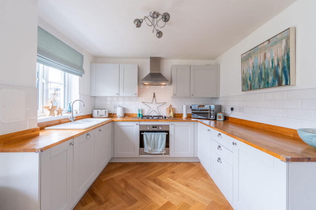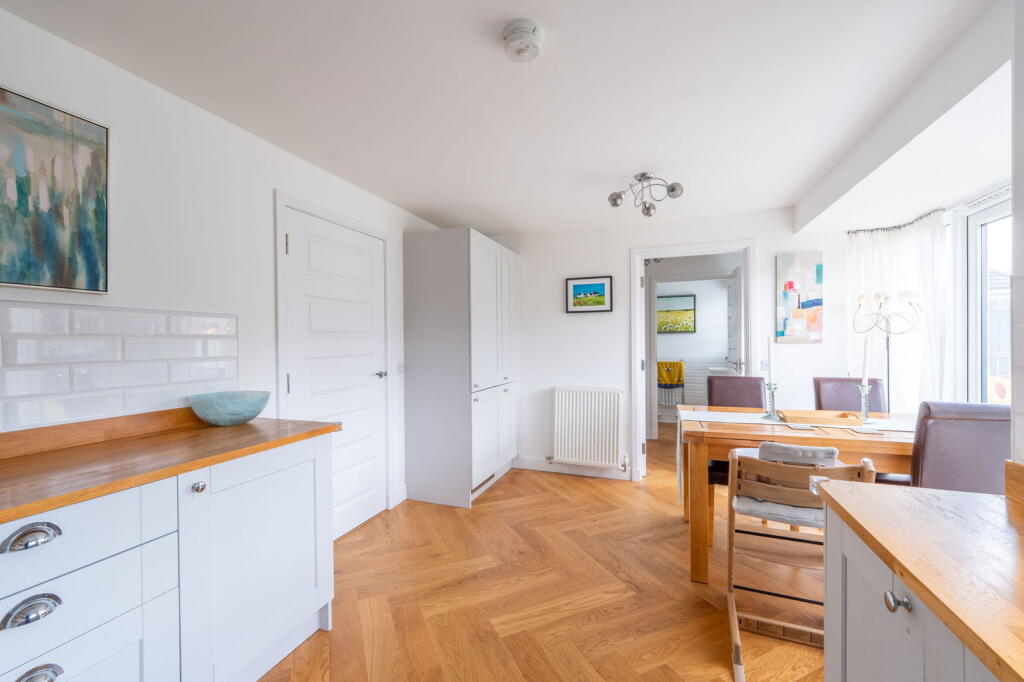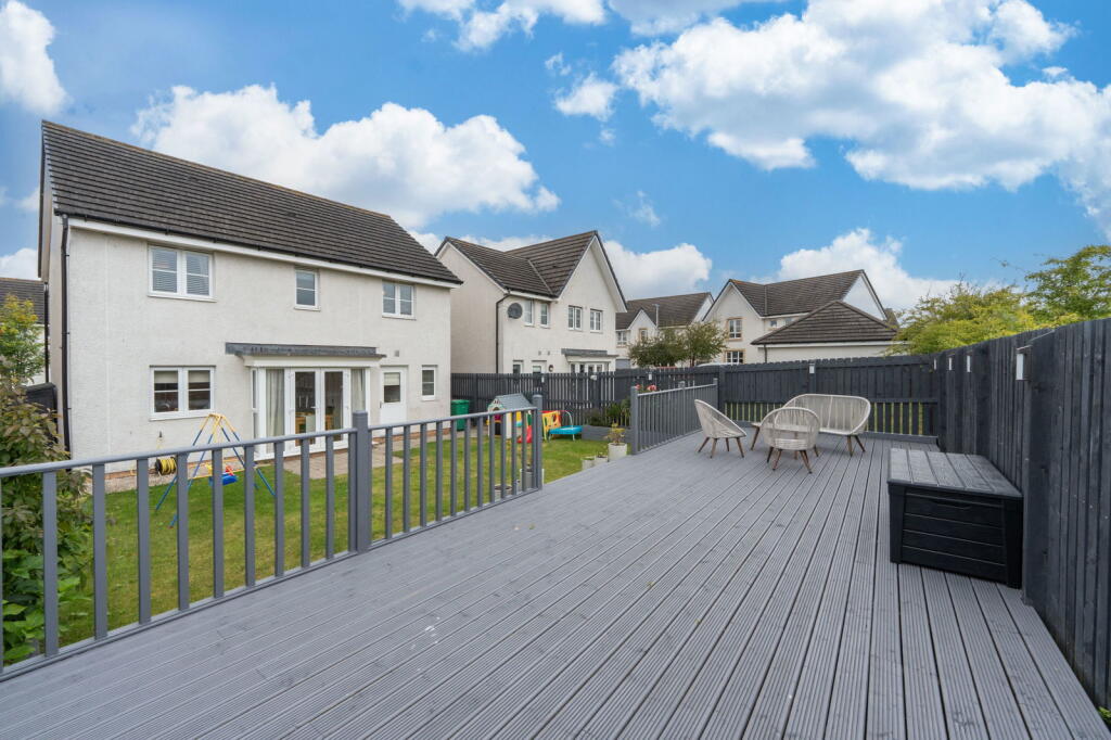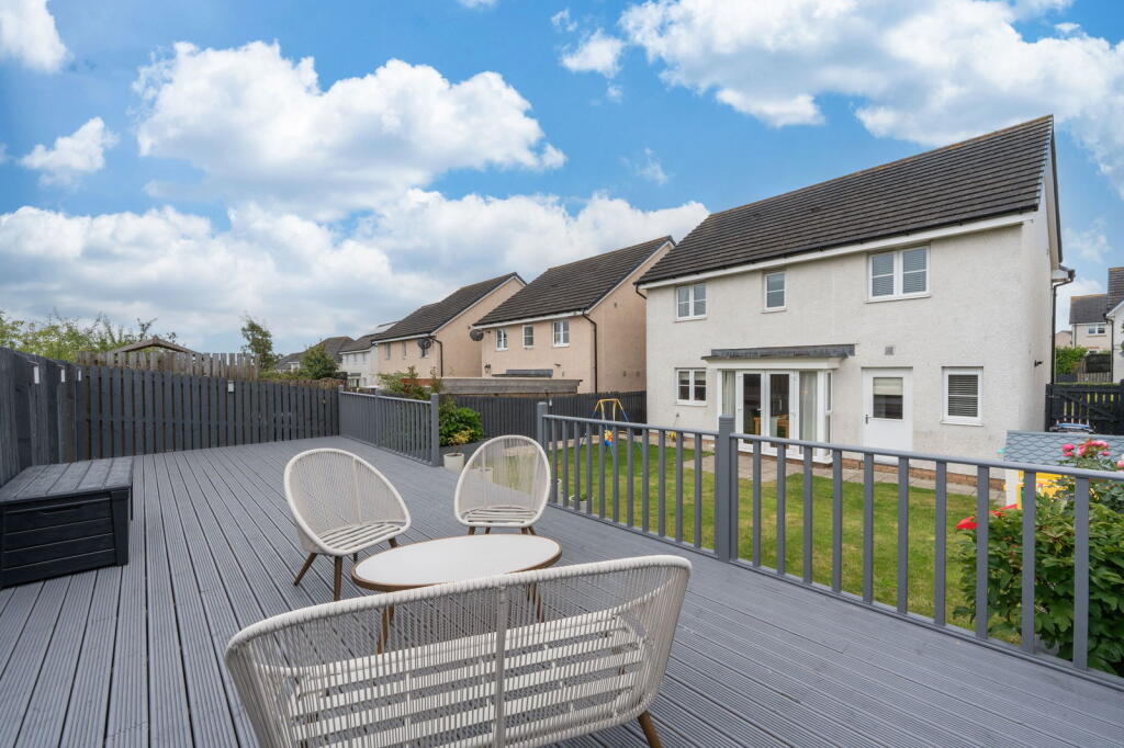 A detached property in Kirkcaldy, Fife. The house has four bedrooms and two bathrooms. It benefits from a modern kitchen and bathrooms, a garden with a lawn and decked area, and a garage.