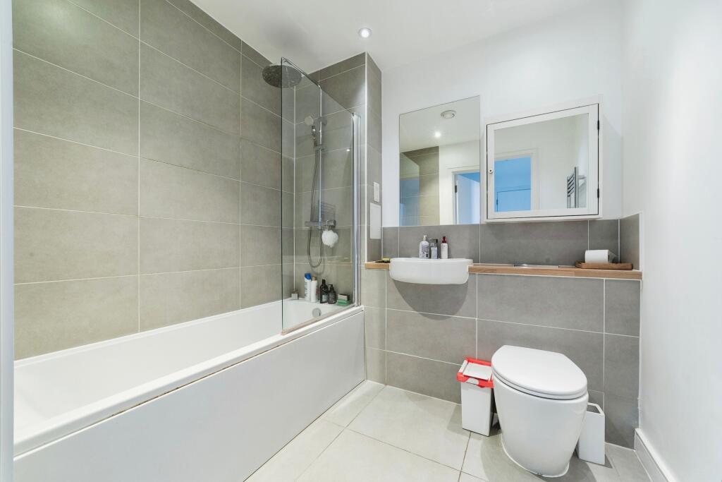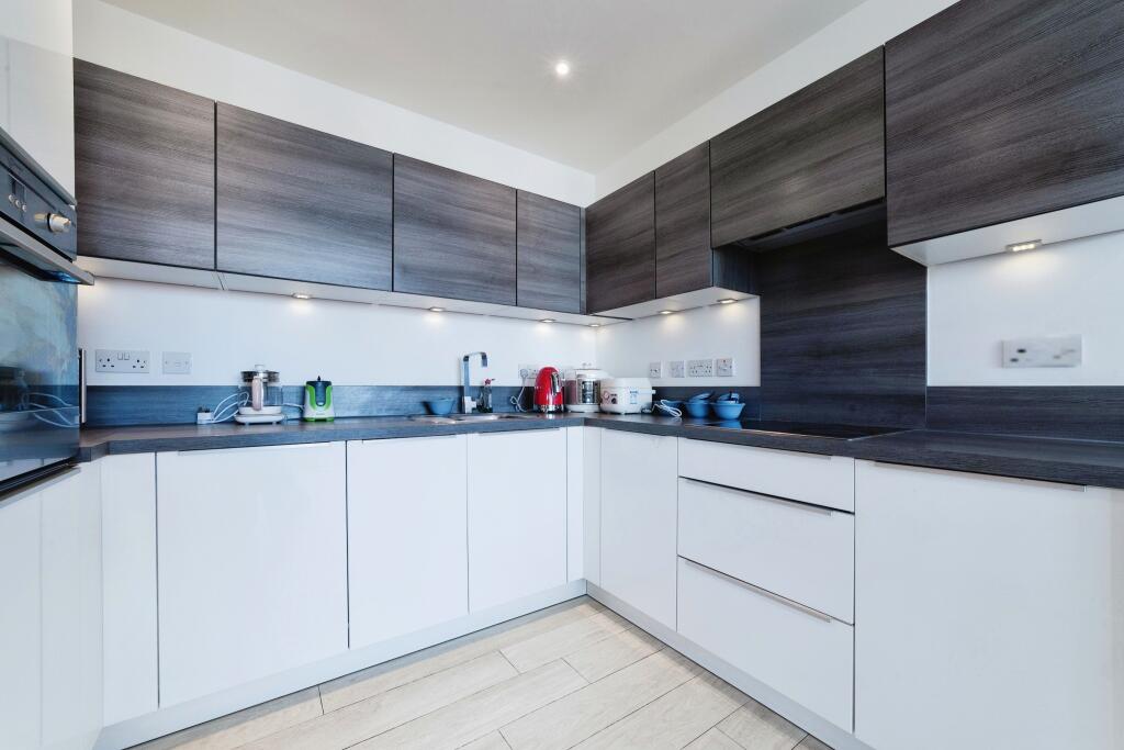 This property is a modern one bedroom apartment located on Hoe Street in Walthamstow, London. The apartment is in excellent condition and benefits from a private balcony and access to communal gardens. The location is convenient, with Walthamstow Central station just a short walk away, providing easy access to central London. There are also several schools and shops nearby. The price seems reasonable compared to other similar properties in the area. However, the lack of information on the plot size and square footage of nearby properties makes a precise comparison difficult.