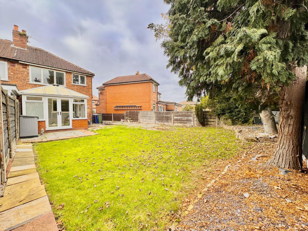 This is a three-bedroom semi-detached house in Denton West, Tameside. The property offers a good balance of location, condition, and land. It is conveniently located near schools and transportation links. The house appears to be well-maintained, with a modern bathroom and a spacious garden. The price seems reasonable compared to the local market, making it an attractive option for potential buyers. The property includes a conservatory and a well-proportioned garden. Overall, this property presents a solid opportunity for those seeking a comfortable family home in a convenient location.