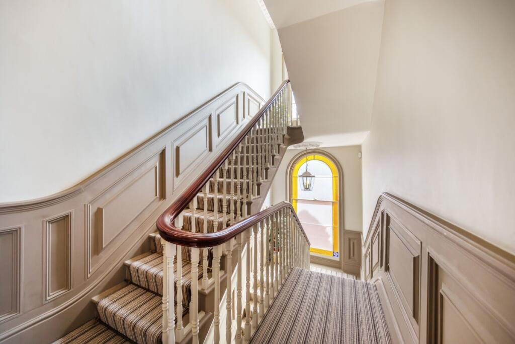 A superb and spacious Georgian House, listed Grade II, with elegant proportions with many features of the period including a wonderful walled garden and a separate coach house. One of Farnham's most outstanding and finest residences.