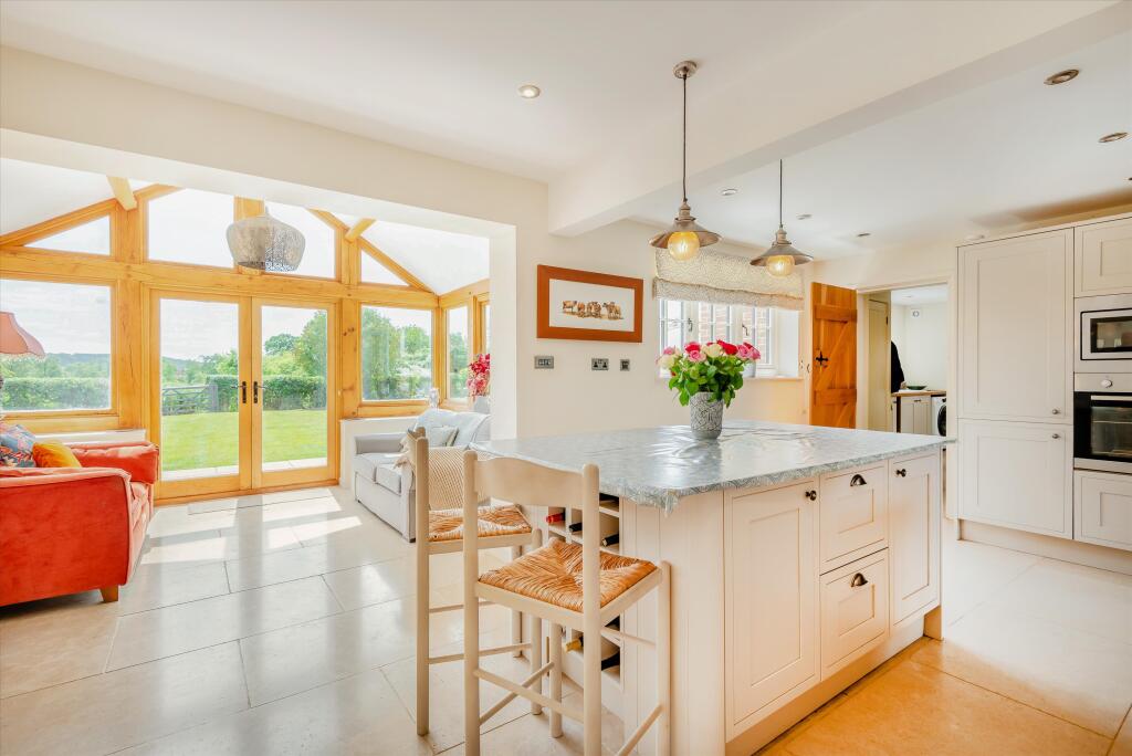 This six-bedroom, three-bathroom property located in Corse Lawn, Worcestershire, presents a compelling proposition for buyers seeking a spacious family home in a desirable rural setting. The property, marketed by Knight Frank, is presented in seemingly immaculate condition, with modern fixtures and finishes throughout. The interior photographs showcase a bright, airy, and well-designed layout, featuring a large kitchen/diner and a sunroom that opens onto the substantial garden. The exterior also appears well-maintained, with ample landscaping and a large lawn. The presence of a double garage adds to the property’s practicality.