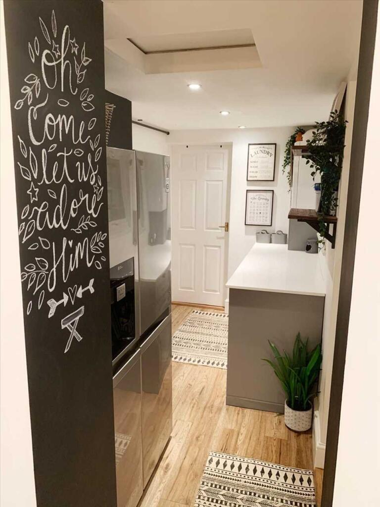 The property appears to be in excellent condition, having undergone a recent and tasteful modernisation. The kitchen has been completely refitted with modern grey units and integrated appliances, and the flooring throughout the house is modern and stylish. The property also benefits from a recently installed wood-burning stove, adding to the overall appeal. The garden is well-maintained and includes a shed, which could be used for storage or as a workshop.