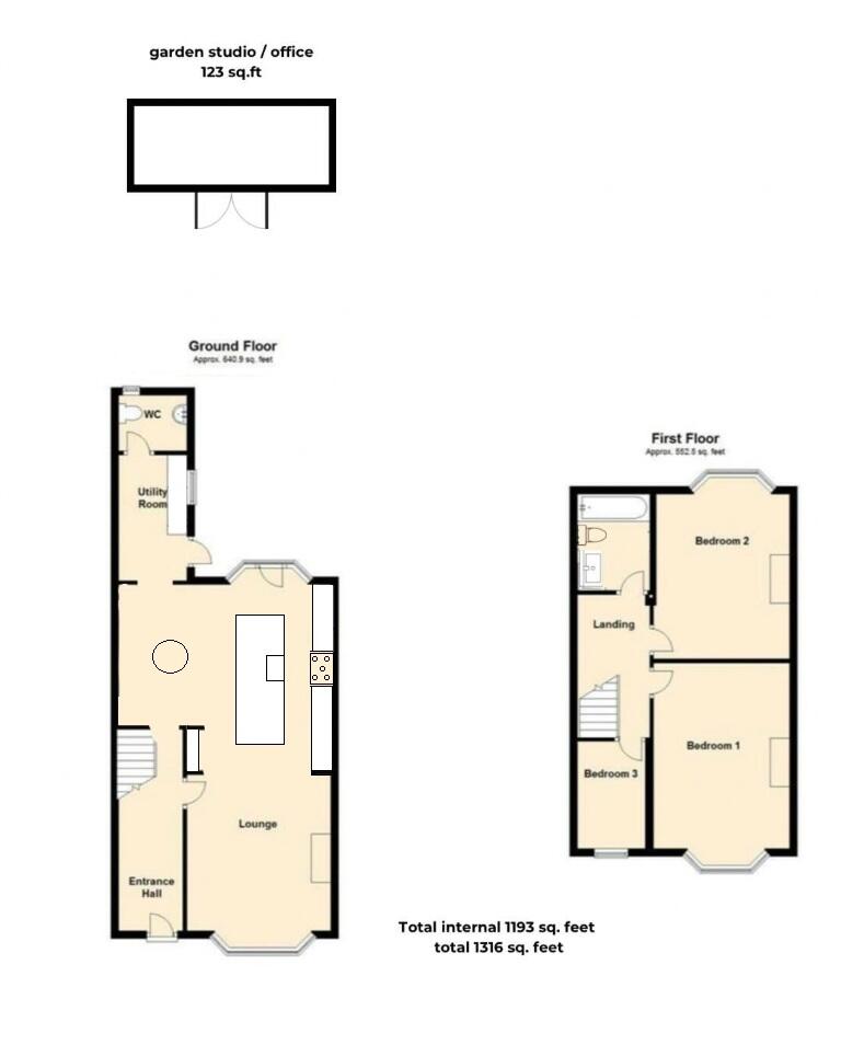 The property is a 3-bedroom, 2-bathroom terraced house located on Tintern Avenue in Westcliff-on-Sea, Essex. It has a total area of 1,193 square feet and sits on a plot of 1,316 square feet. The list price is £410,000.