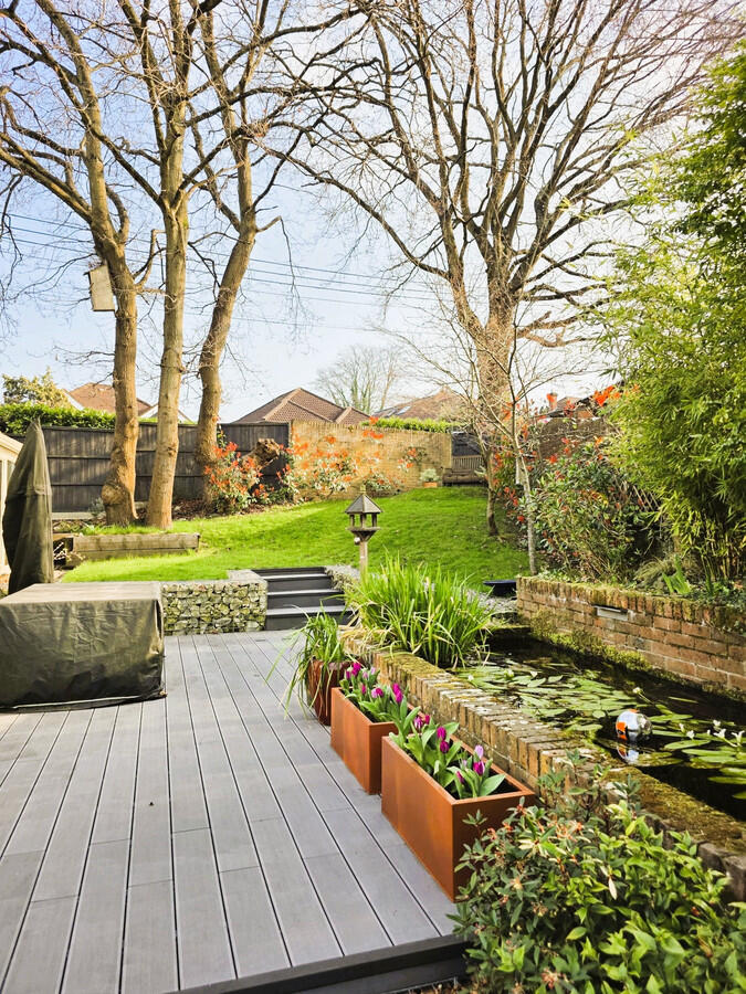 This property is a detached house located in Hedge End, Southampton. It has 5 bedrooms and 3 bathrooms, and is approximately 3,311 square feet. The property benefits from a large garden with a pond and decking area. The house is in excellent condition, with a modern kitchen and bathrooms. The location is desirable, with good schools and transport links nearby. The asking price of £750,000 seems reasonable considering the size, condition, and location of the property, although slightly above the average price for the area.