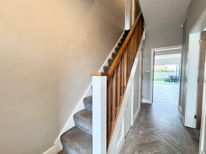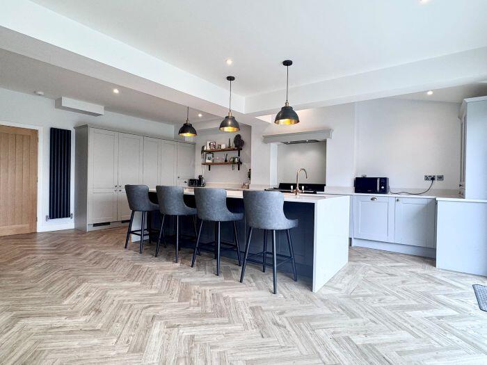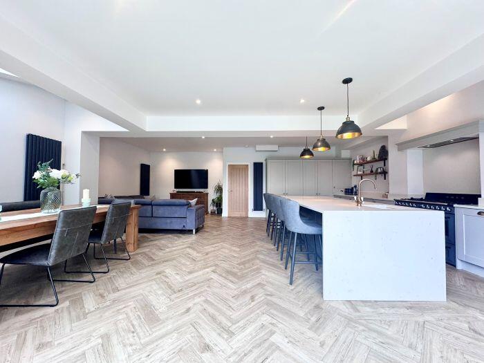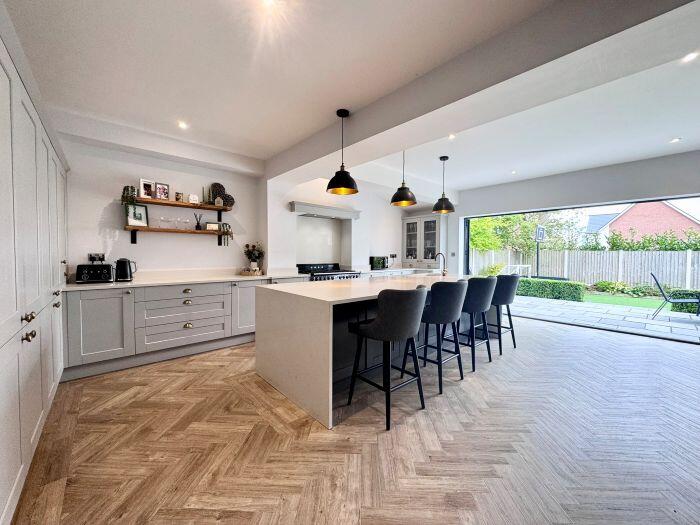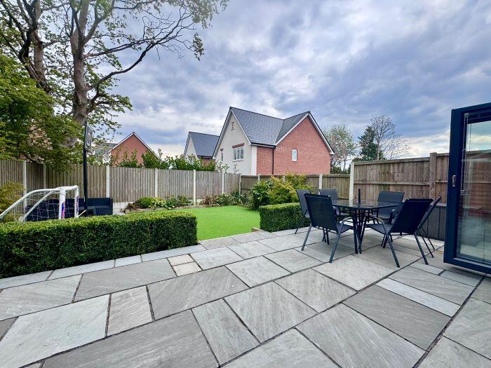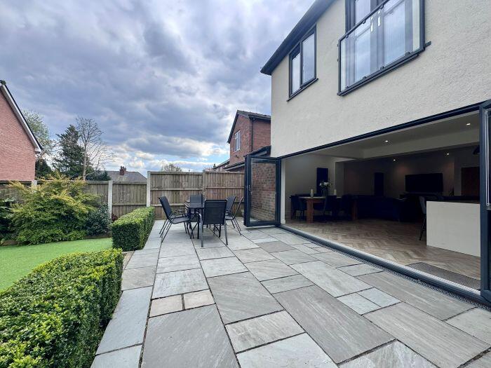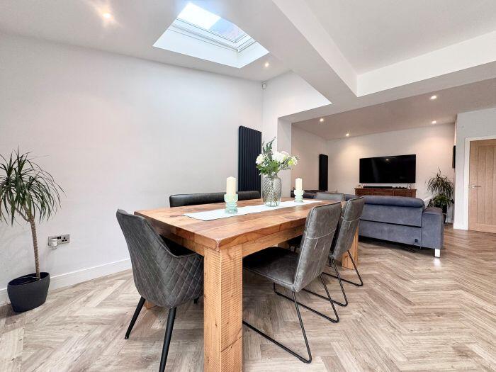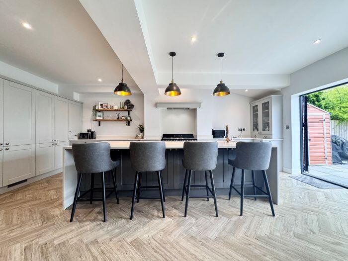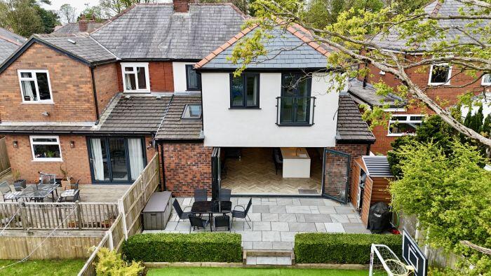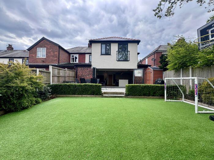 This property is a 4 bedroom, 2 bathroom semi-detached house located in Bolton, Greater Manchester. The property has been recently extended and renovated to a high standard, as evidenced by the images. The extension includes a modern kitchen with bi-fold doors opening onto a patio and garden. The garden features artificial turf and a patio area. The property also benefits from a large driveway and garage. The location is good, with nearby schools and transportation links. The average house price in the area is £407,854, and the average price per square foot is £321. This property is listed at £485,000 and is 2,962.09 sqft. The price per sqft is therefore £163.75, which is significantly lower than the average for the area. This suggests that the property is good value for money.