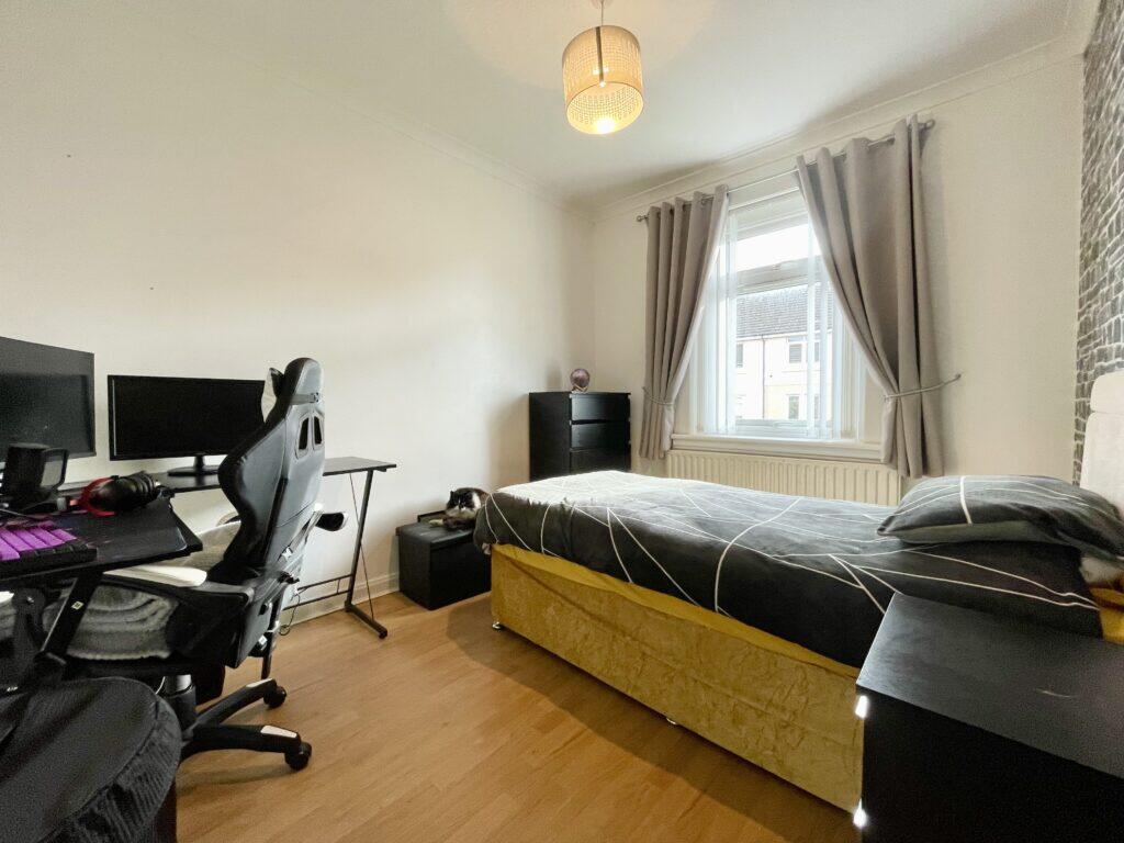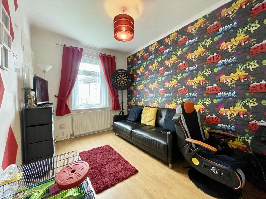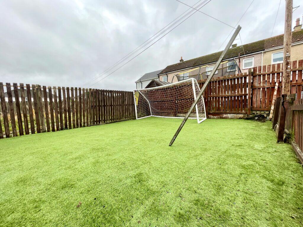 The property is a 3-bedroom flat in Holytown, Motherwell. It is conveniently located near local amenities and transportation, with Holytown train station less than a kilometer away. The interior of the property appears to be in good, modern condition, particularly the bathroom and kitchen. Externally, there’s room for improvement. The property benefits from a good-sized garden, mostly laid to artificial lawn, offering outdoor space. Listed at £79,999, the property seems to offer good value, significantly undercutting the area’s average price per square foot.