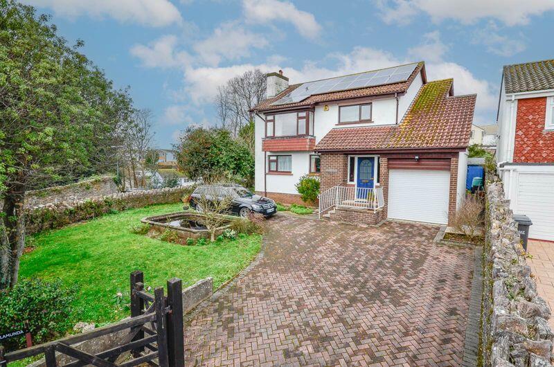 This reverse level FOUR BEDROOM DETACHED HOUSE enjoys a sunny southerly aspect and benefits from open views. Positioned on a corner plot flanked by rugged stone walling the property provides driveway parking, as well as an integral garage and surrounding lawned gardens complete with a garden pon...