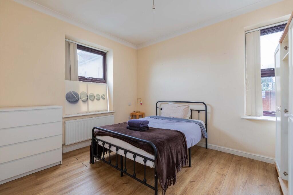 This is a two-bedroom flat in Central Slough, Berkshire. The property is in a good location, close to transportation, schools and local amenities. The flat appears to be in good condition, with a modern kitchen and bathroom. The asking price seems reasonable for the area. However, the lack of private outdoor space might be a drawback for some buyers.