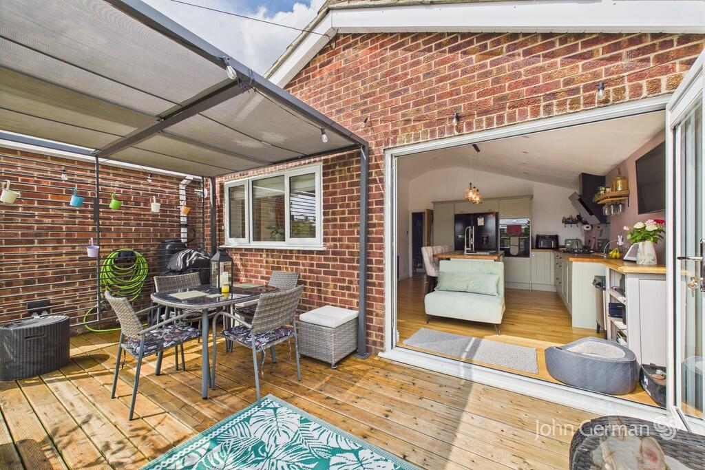 A beautifully presented and thoughtfully EXTENDED bungalow, offering 2 double bedrooms, a STUNNING VAULTED LIVING/DINING KITCHEN, sitting room, and a STYLISH REFITTED BATHROOM, this impressive home is ideal for those seeking space, comfort, and versatility. Set within a landscaped, SOUTH-FACING G...