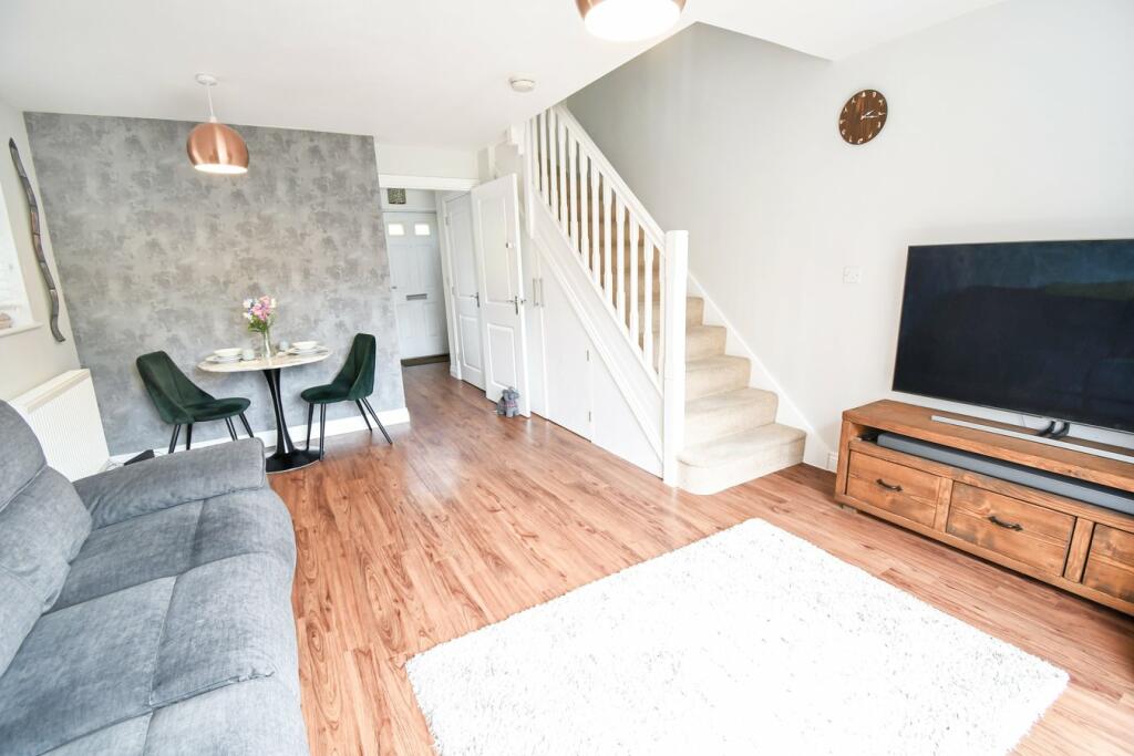 This two-bedroom semi-detached house in Kempston Rural, Bedford, presents a modern and well-maintained living space. The property boasts a contemporary interior design, featuring a modern kitchen and bathroom, and attractive flooring. The open plan kitchen/diner flows seamlessly into the living area. Images show a relatively small but well-presented garden, ideal for families or those seeking outdoor space, and there is the added benefit of off-street parking. The area benefits from good local schooling with several highly-rated options within a short distance. Accessibility to train services to Bedford and potentially beyond is also a benefit, and there appears to be good local road access via the A421.