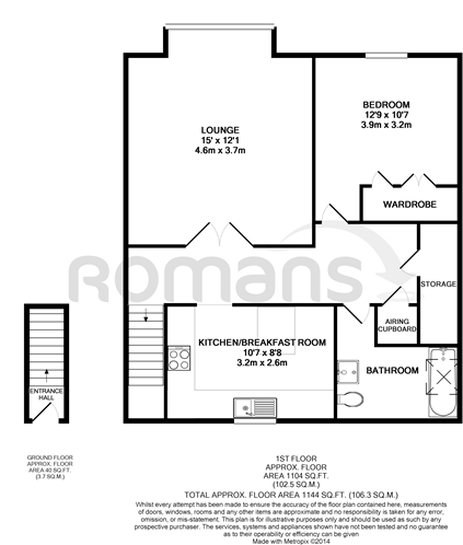 *ROMANS*: A well presented one bedroom first floor maisonette. The property comprises modern kitchen with integrated appliances and breakfast bar, large lounge overlooking fields, double bedroom with fitted wardrobes and modern bathroom with shower attachment.