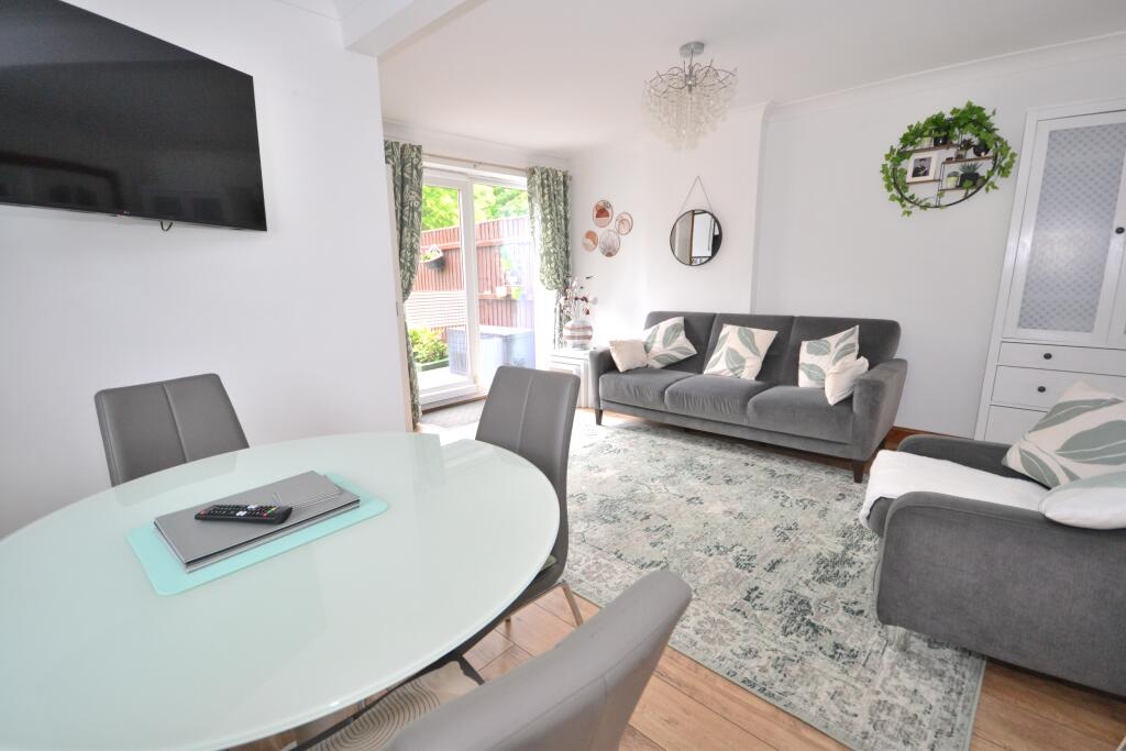 The property appears to be in good condition. The images show a recently modernised interior with updated kitchen and bathroom fittings. There is also evidence of recent decorating throughout. The garden is paved and has a shed, providing additional storage space.