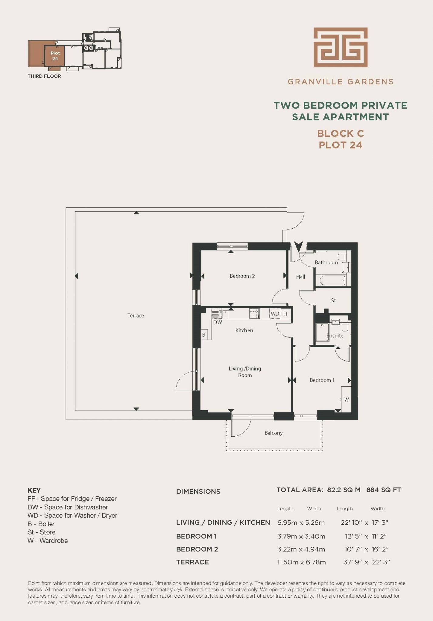 ** THE FINAL COLLECTION ** An exceptional two-bedroom newly built apartment, positioned on the third floor, extending to approximately 884 sq ft (82.2 sq m) with a private balcony and roof terrace, lift access and secure underground parking for one car. Granville Gardens is...