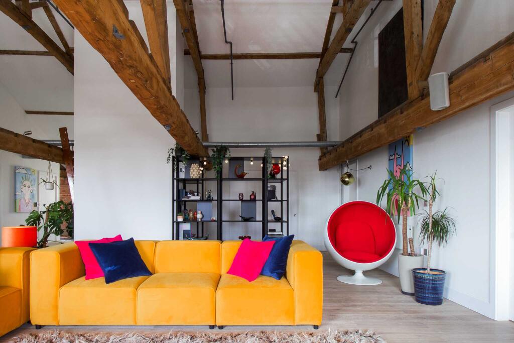 Expansive and flawlessly executed, this penthouse loft-style apartment is thoughtfully crafted to honour the mill's industrial heritage, featuring striking, soaring volumes and exposed structural elements.