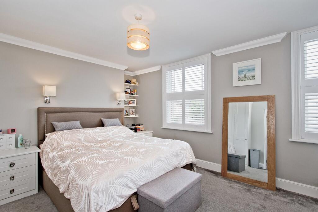 This property is a four-bedroom, two-bathroom terraced house located in Holden Park Road, Tunbridge Wells. The property benefits from a good location, close to local amenities and transport links. The house itself appears to be well-maintained and in good condition, with a modern kitchen and bathroom. There is also a conservatory and a garden. The list price of £695,000 seems reasonable given the average price per square foot in the area and comparable properties.