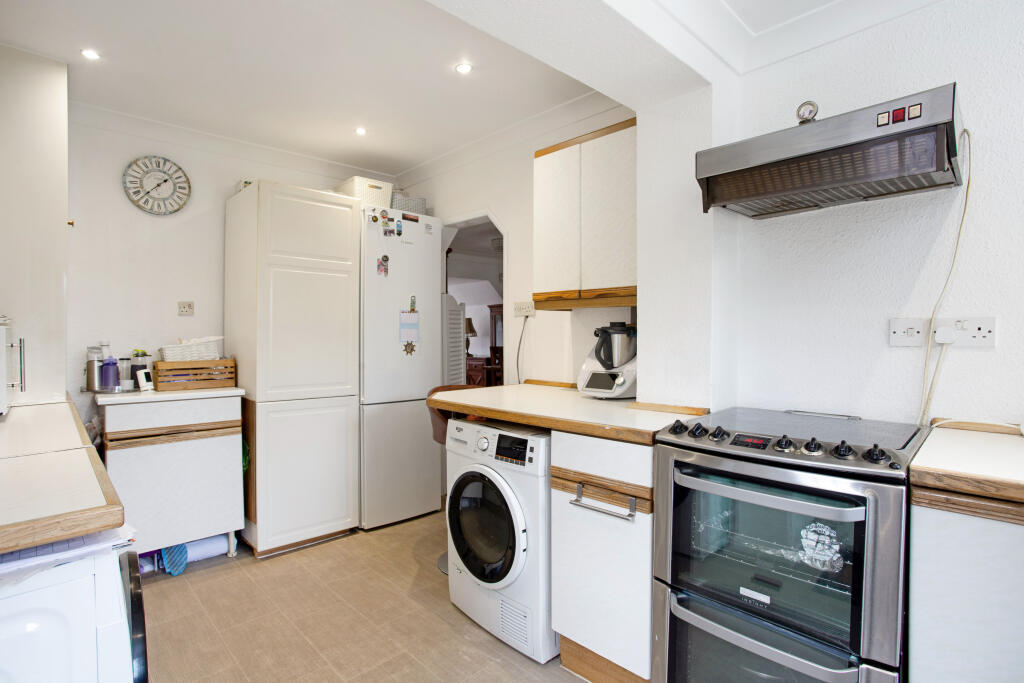 Based on the provided images, the property appears to be well-maintained and in good condition. The interior is modern and updated, with a recently fitted kitchen and bathrooms. There is no evidence of significant wear and tear or the need for extensive renovations. The property benefits from a well-maintained garden, which adds to its overall appeal.