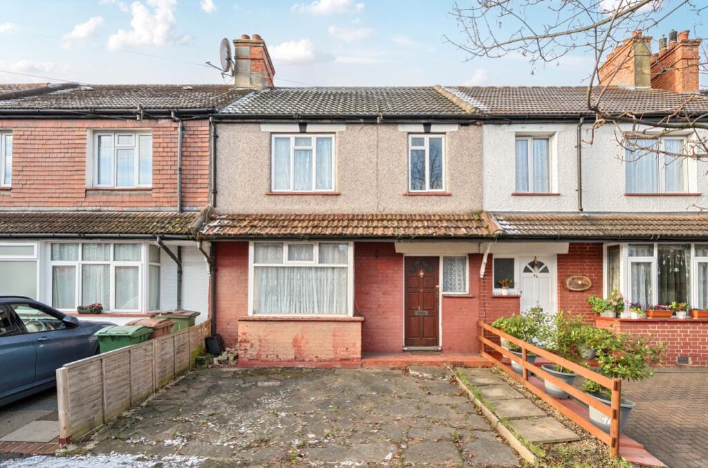 This is a three-bedroom terraced house located on Gander Green Lane in Sutton. The property is in need of renovation, with dated decor and fittings throughout. However, it benefits from a convenient location, with proximity to transport links and schools. The property has a garden, although it requires landscaping. The asking price of £450,000 appears reasonable, considering the location and the potential for improvement.