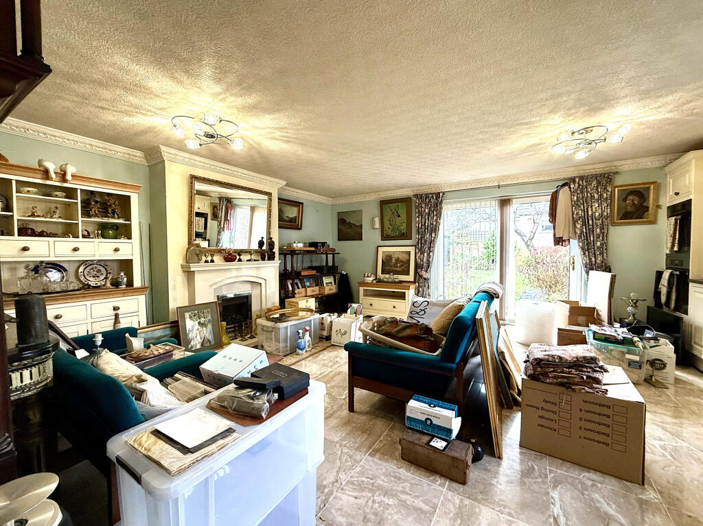 This semi-detached dormer bungalow sits on a generous plot with a wrap-around garden that surrounds the home on three sides, offering privacy, sun-soaked patios, and plenty of space for outdoor living.