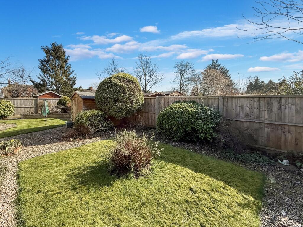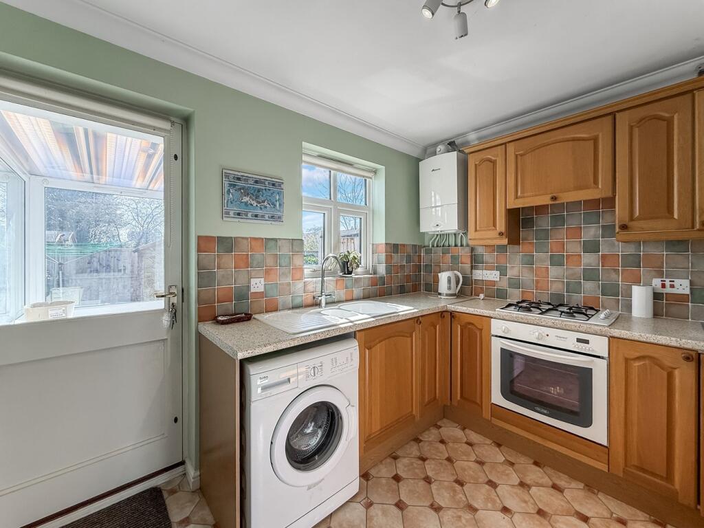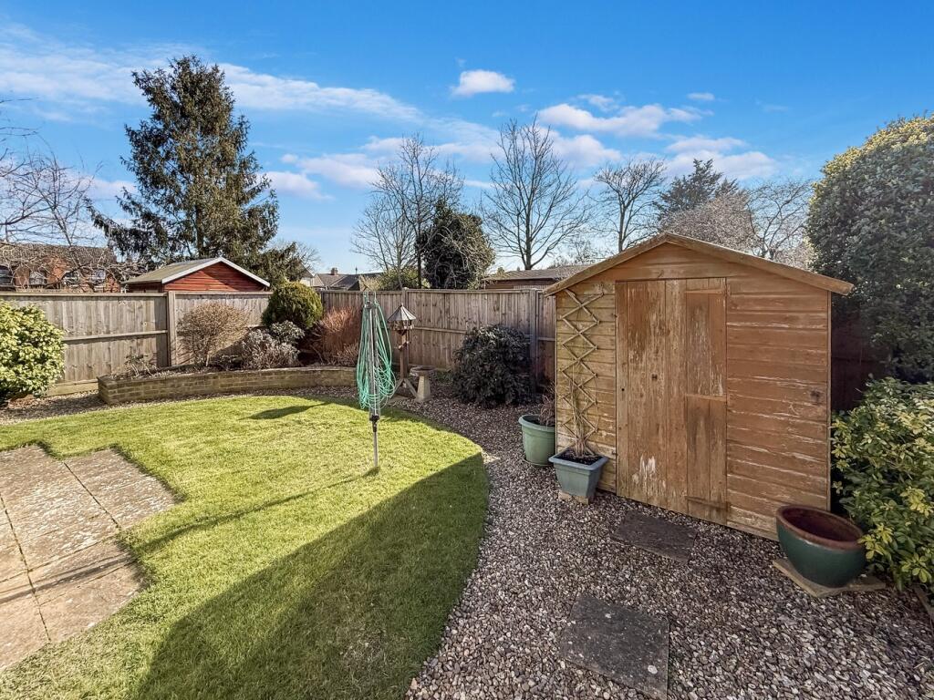 The property appears to be in good condition for its age, with a well-maintained exterior and interior that is clean and tidy. The kitchen and bathroom appear updated, although the style is traditional. The garden is relatively small but well-maintained with a shed and patio area.