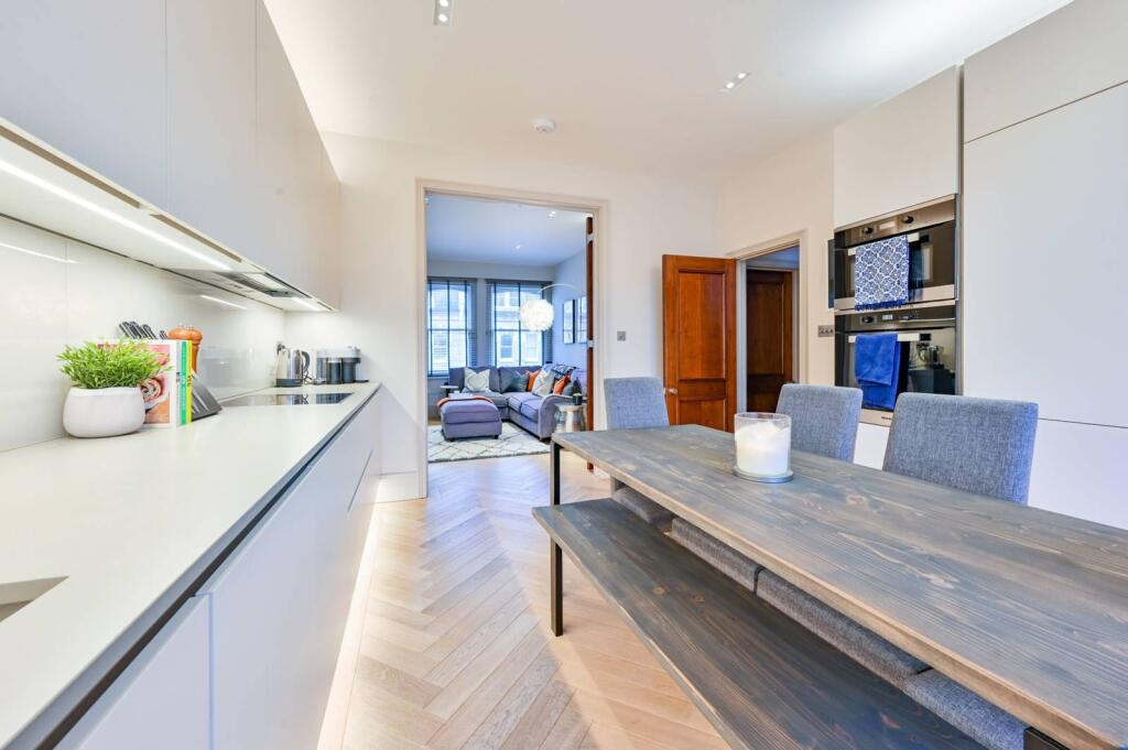LONG LET. Set within a beautiful period property this stunning, fully refurbished three bedroom apartment offers a professionally designed interior, Poggenphol kitchen, master suite with mezzanine study and private balcony.