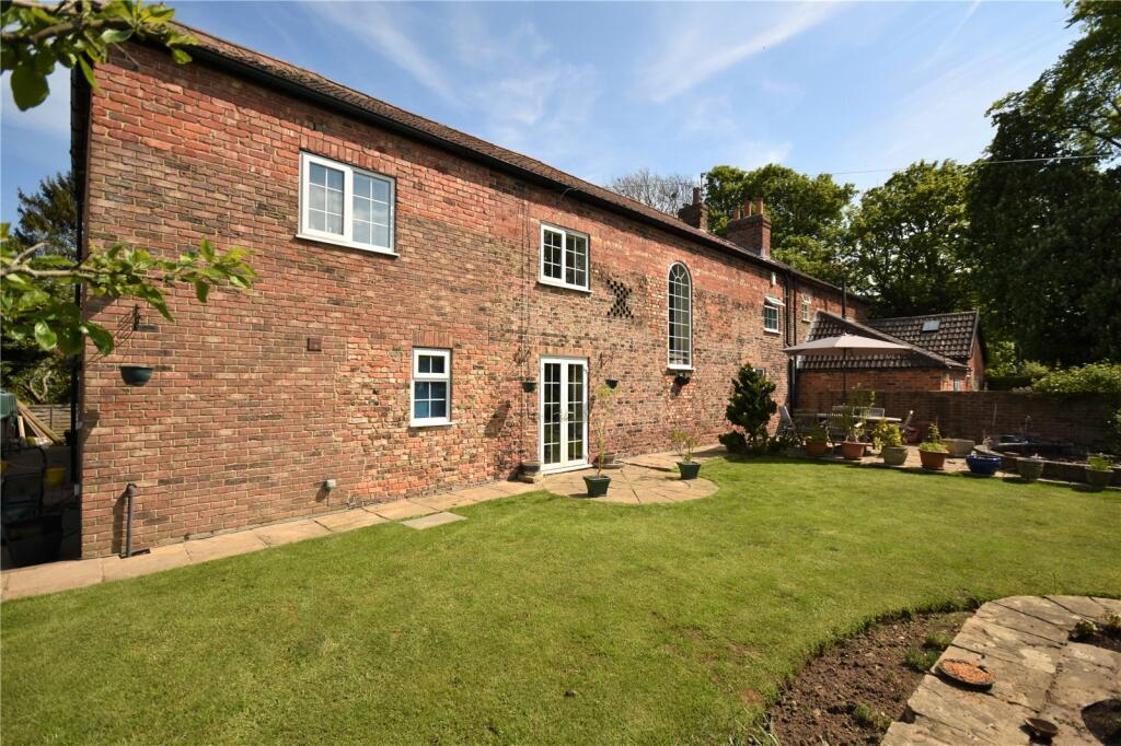 This property is a converted four-bedroom barn conversion located on Church Street in the sought-after village of Goldsborough, North Yorkshire. The property presents a charming character, evident in the exposed wooden beams and brickwork visible in the interior photographs. The house comprises four bedrooms and three bathrooms, distributed over what appears to be two floors. The exterior is attractive, with a large garden, offering privacy and outdoor space. The property is close to Goldsborough Church of England Primary School, rated ‘Good’ by Ofsted, making it an appealing choice for families. While precise plot size isn’t detailed, the garden appears sizable and well maintained. The area also offers relatively easy access to Harrogate via Knaresborough train stations, located at approximately 6km. This property offers an interesting mix of character and modern convenience. Potential buyers should carefully consider the lack of detailed information regarding land size and the property’s condition compared to the price. Given that the average property price and sq ft price isn’t available in the nearby streets, the price must be examined against the comparable listing prices. Additional due diligence on the precise condition and necessary maintenance would also be recommended prior to purchase.