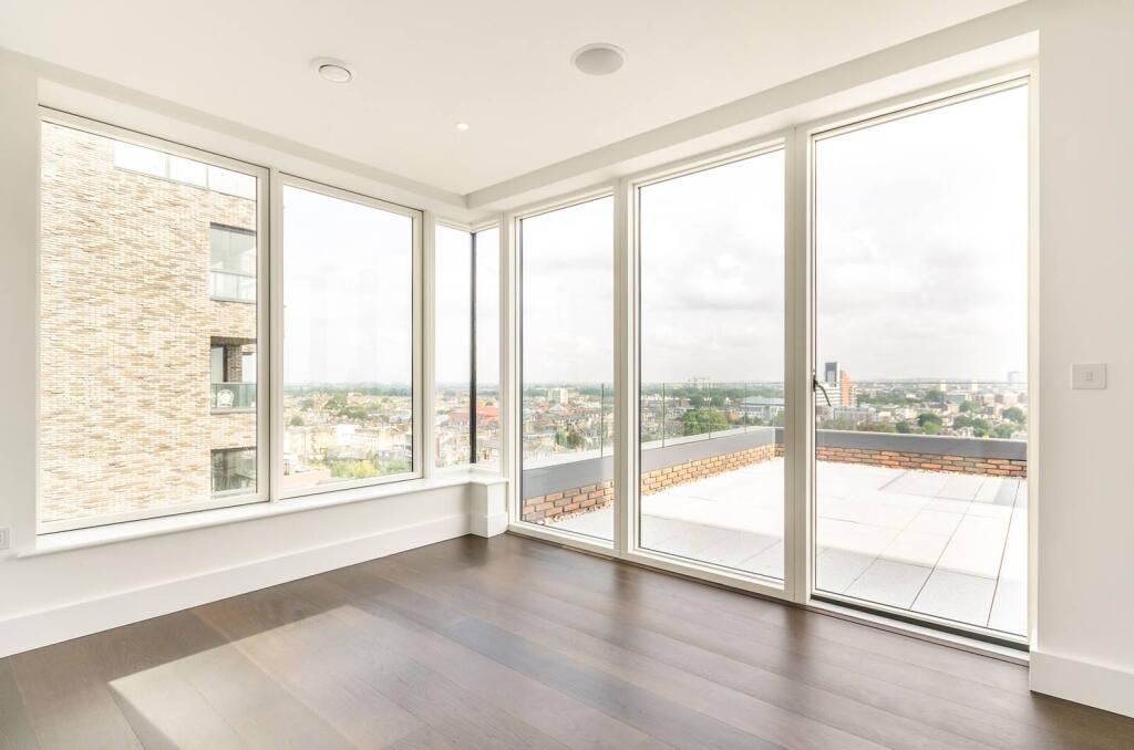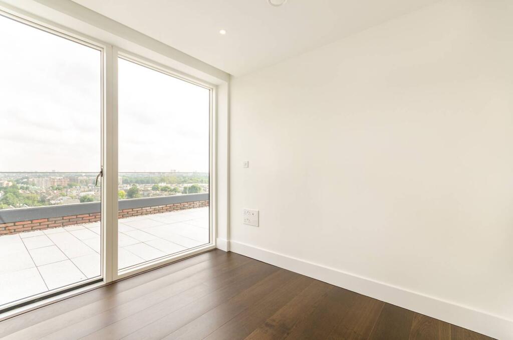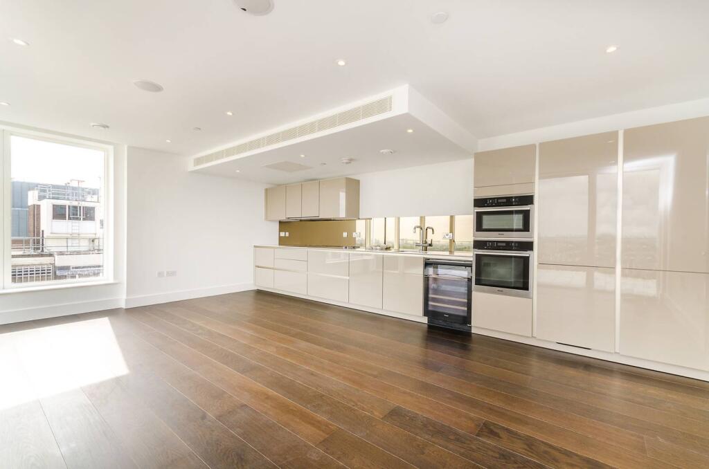 SHORT LET. Finished to a high standard throughout, this stunning two bedroom flat on the 8th floor in a new development boasts a balcony with a fantastic view of London, and a spacious open-plan reception room/kitchen area.