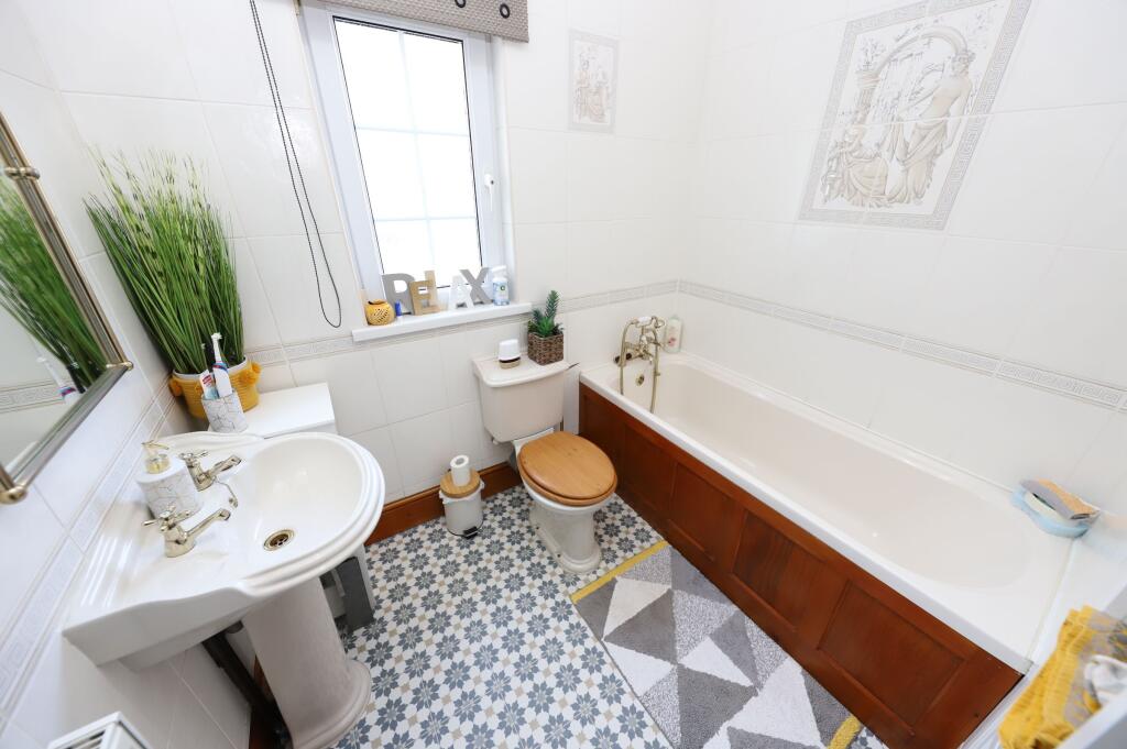 This three-bedroom, two-bathroom terraced house in Tudor Terrace, Aberdare, presents itself well in the provided photographs. The property benefits from a modern, updated kitchen and bathrooms, which are shown to a high standard. The interior boasts recently decorated rooms, displaying a range of styles which would potentially appeal to families. The living areas are spacious and well-lit. The external area comprises a sizable, paved rear garden, providing a functional and useable outdoor space.