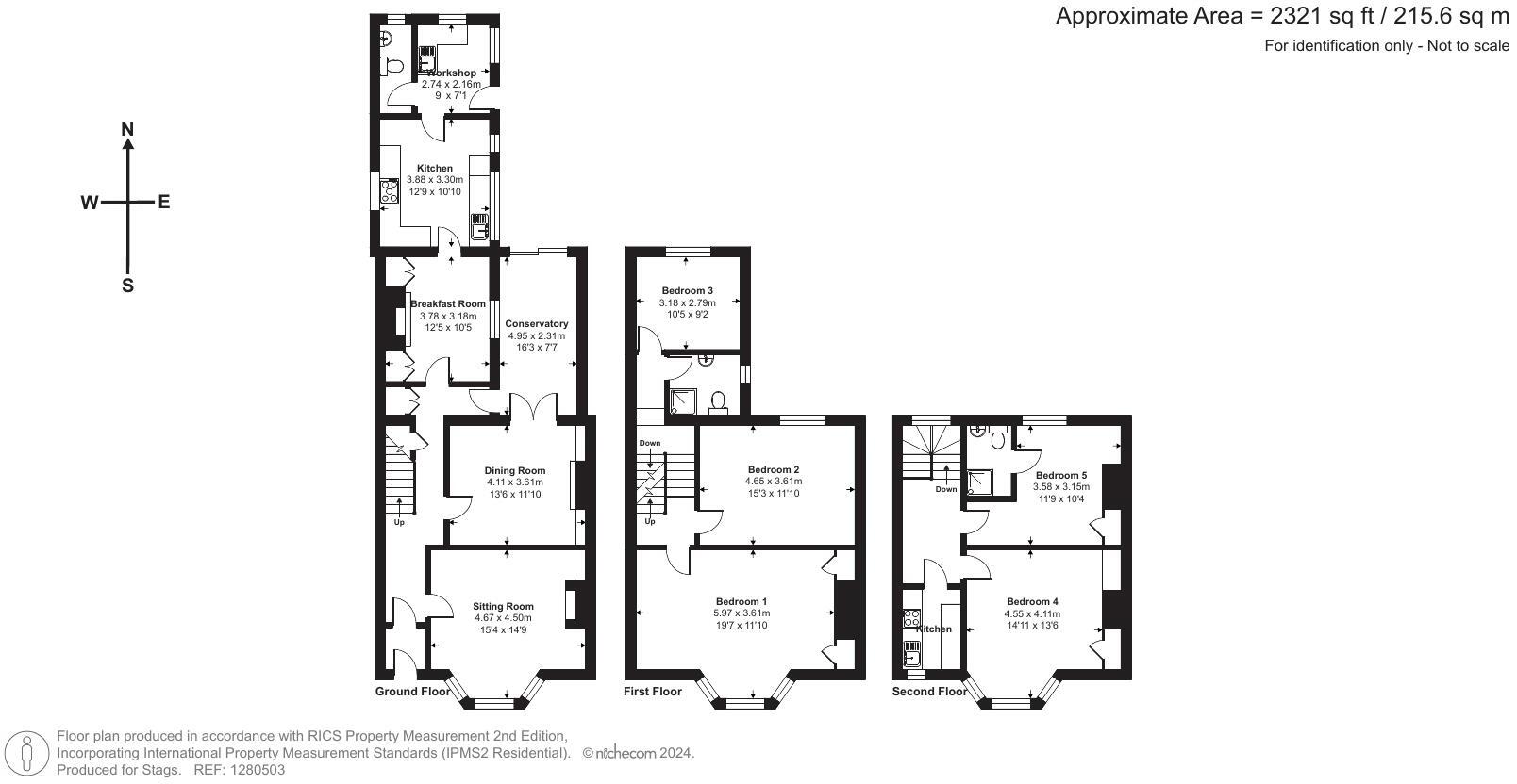 The property itself is a five-bedroom, two-bathroom terraced house with a substantial plot size of 2,321 square feet. The images reveal a property that appears well-maintained and in good condition, showcasing period features characteristic of traditional architecture. The interior is presented in a clean and updated style, suggesting that significant renovation work may not be required. The kitchen appears modern and functional.