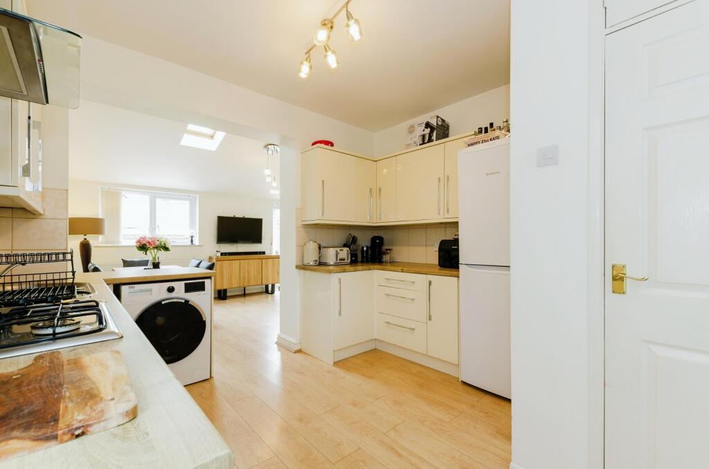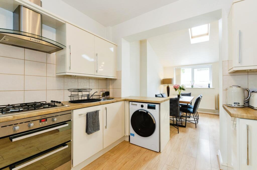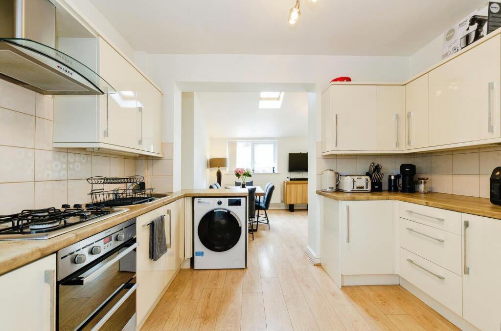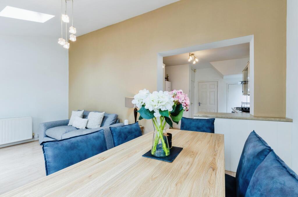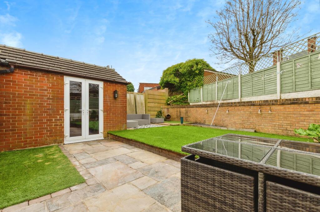 The property itself appears to be in good condition. The interior is presented well, with a modern kitchen and updated bathroom. There is also evidence of an extension to the rear of the property. The garden is a good size, with a patio area and artificial lawn.