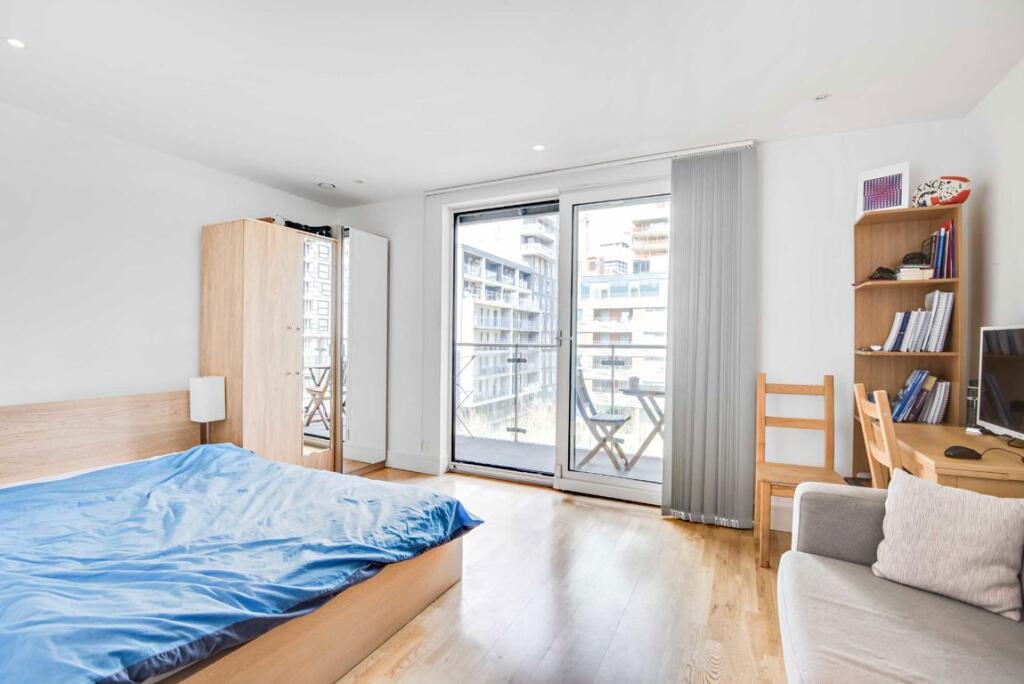 A bright studio apartment on the fourth floor of this sought after development. This modern apartment has wooden flooring, a separate sleeping area and a private balcony.